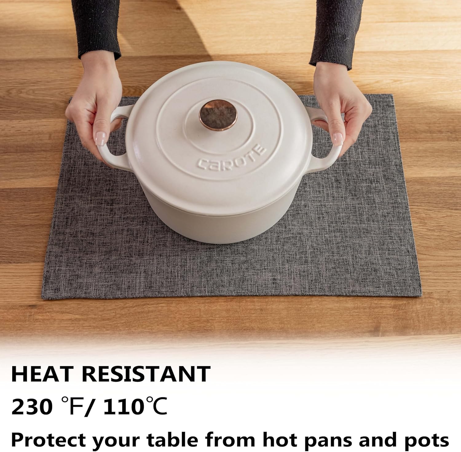 Demetex Placemats Table Mats Set of 4 Heat Resistant Washable Cloth Place Mats for Dining Table Holiday, Dark Grey