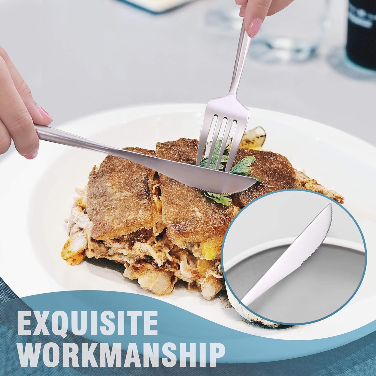 • DURABLE AND SAFE : Crafted from premium stainless steel. Durable and healthy for everyday use. The heavy-duty solid handle is not easy to deform, which is easy to compare with another cheap cutlery set