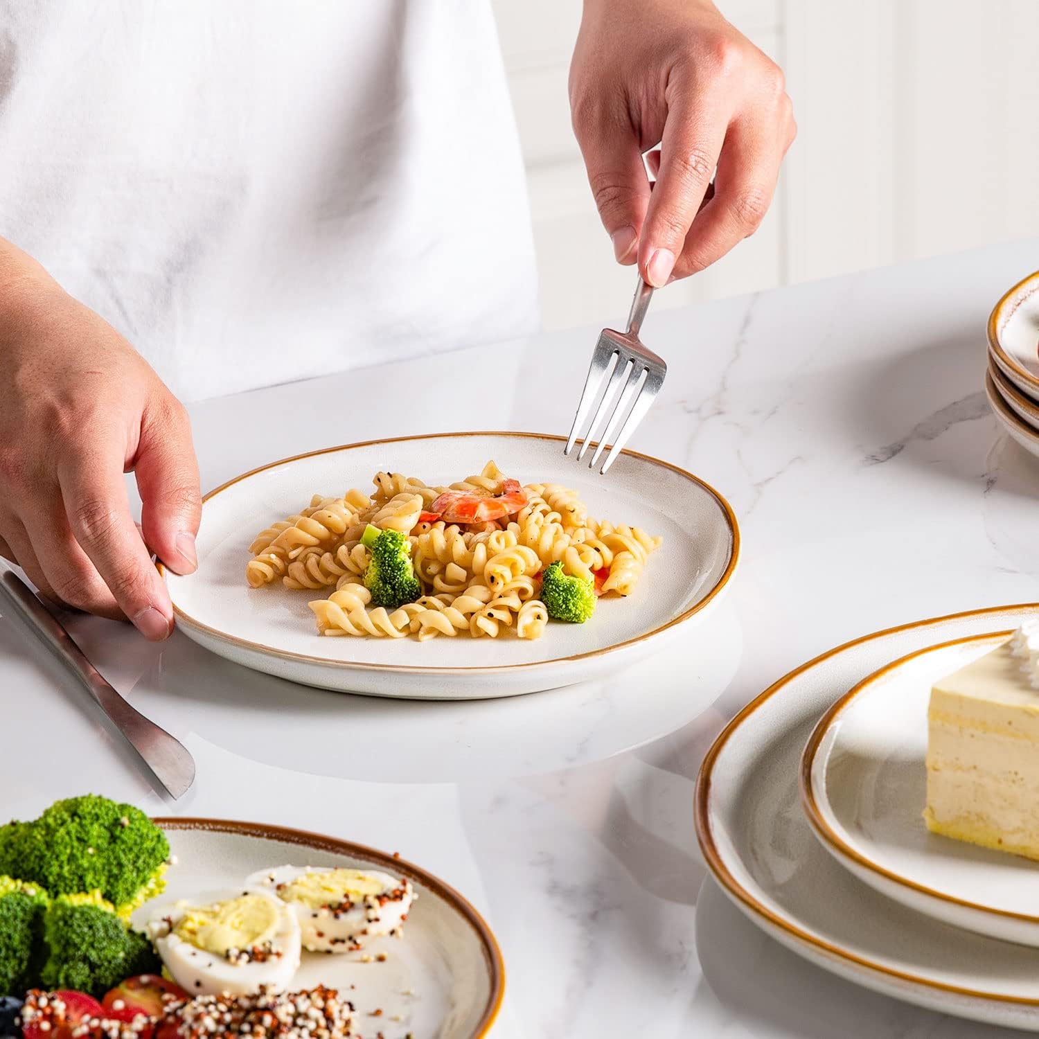 • DURABILITY EAT SAFTY:The plates are made of pro-grade material, and the glaze is all-natural. After 2340℉ high temperature firing for 13 hours, the plates are lead-free, cadmium free, meaning you will never have to worry about any health problem.The glaze is also extra strong to prevent scratches from your knives and forks.