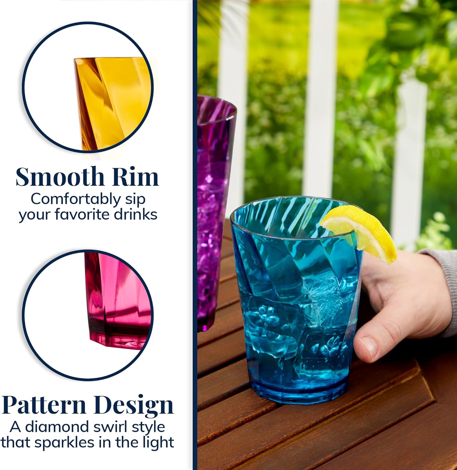 US Acrylic Optix Plastic Reusable Drinking Glasses (Set of 16) 14oz Rocks & 20oz Water Cups in Jewel Tone Colors | BPA-Free Tumblers, Made in USA | Top-Rack Dishwasher Safe