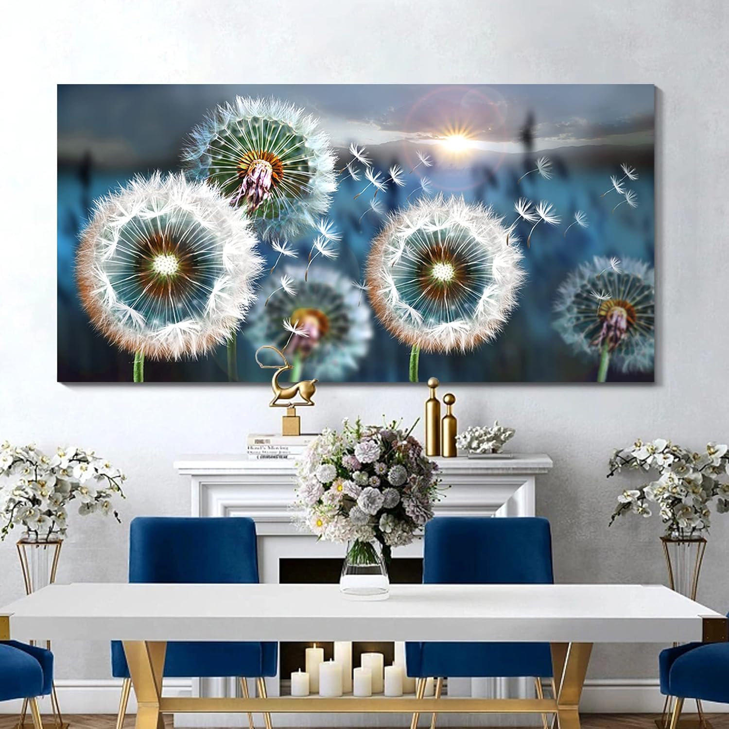 Large Wall Art Dandelion Canvas Art Wall Decor for Living Room White Dandelion Sun Blue Landscape Prints Artwork Modern Framed Wall Art for Bedroom Office Home Decorations Pictures for Bedroom Wall Decor Size 29x58