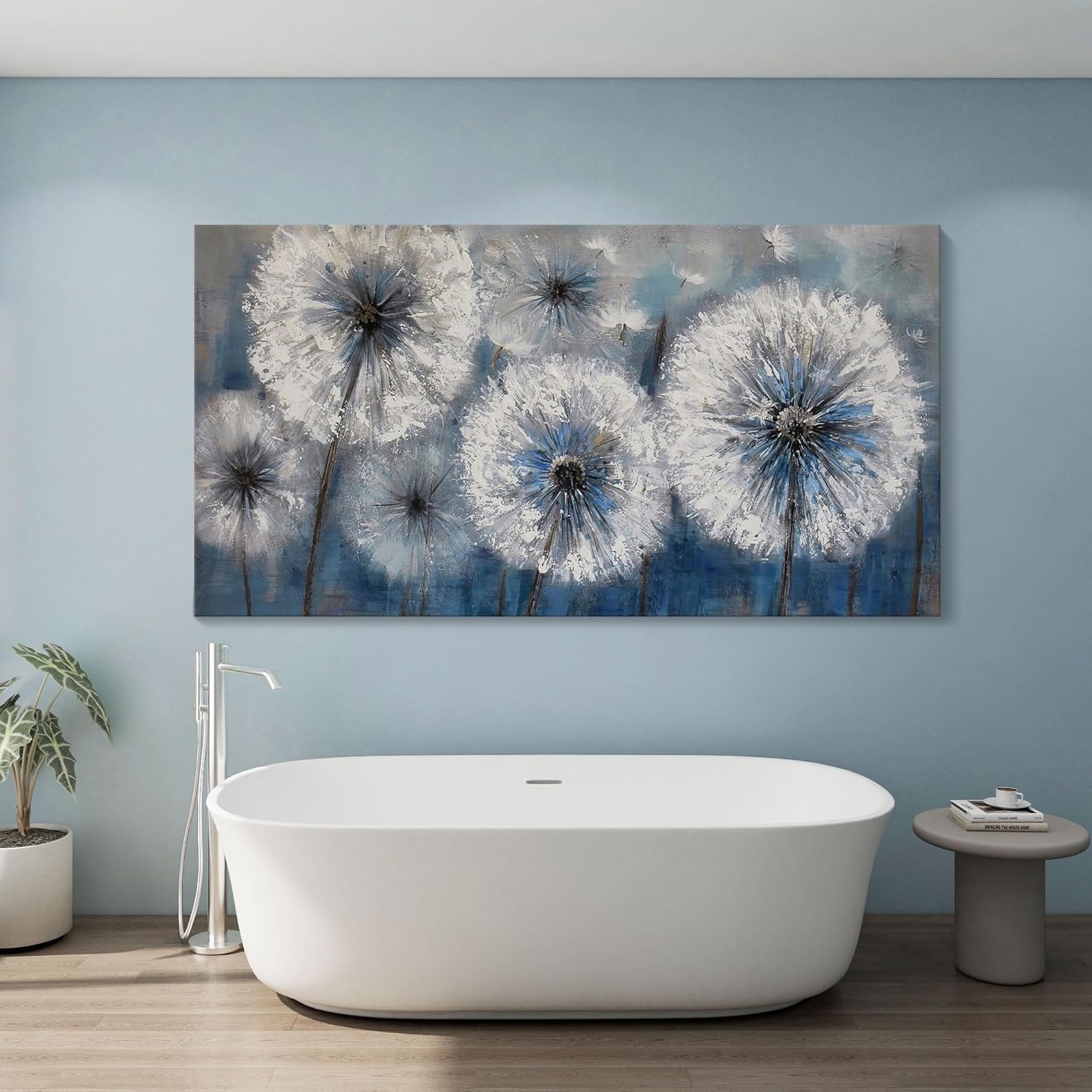 Dandelion Wall Art Blue Large Picture for Living Room Canvas Art Wall Decor Above Bed White Flower Artwork for Walls Wall Paintings Modern Art Aall Decor Framed Wall Art for Bedroom 29×58IN