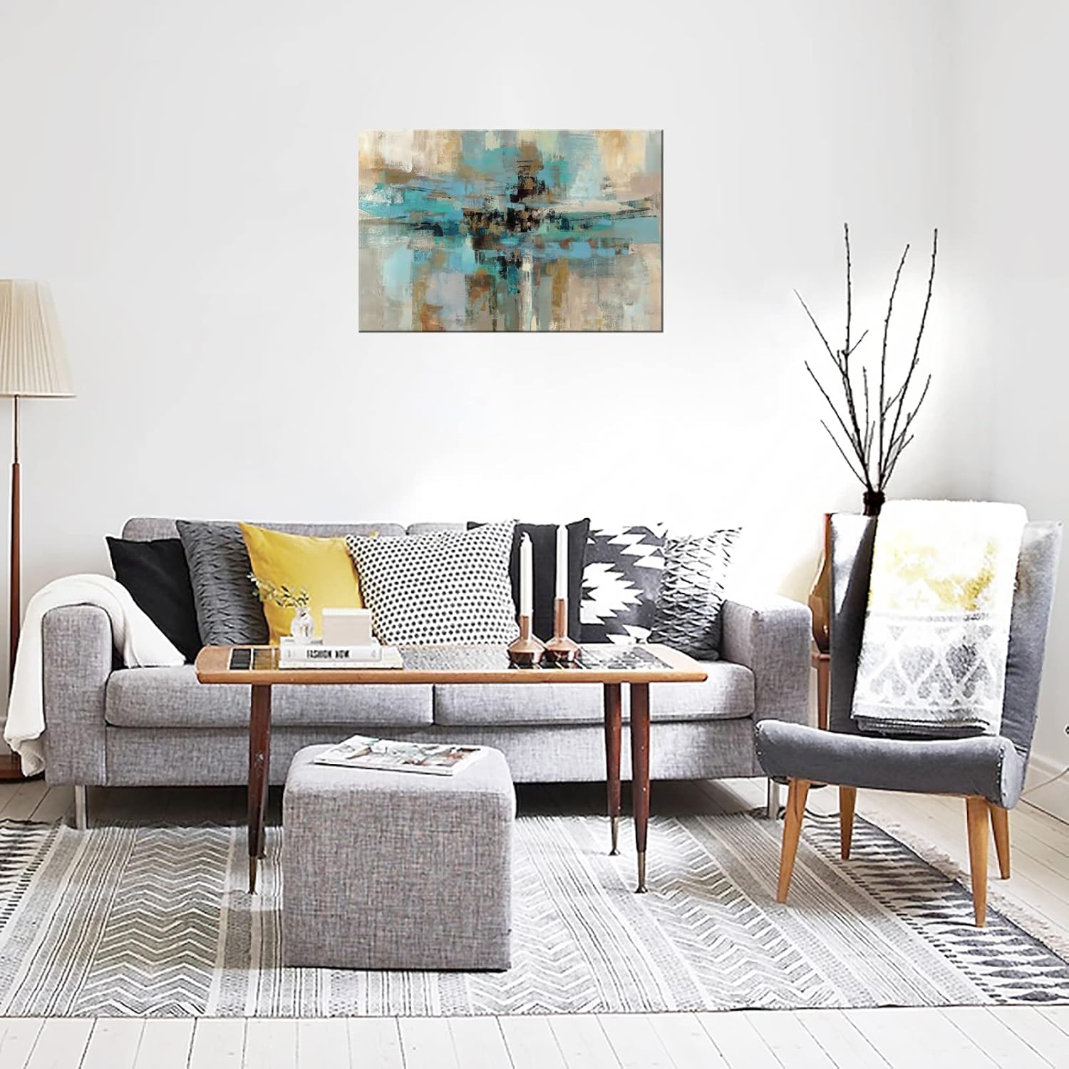 DZL Art A74769 Canvas Prints Abstract Wall Art Print Paintings Blue and Brown Stretched Canvas Wooden Framed for Living Room Bedroom and Office Home Decor Artwork