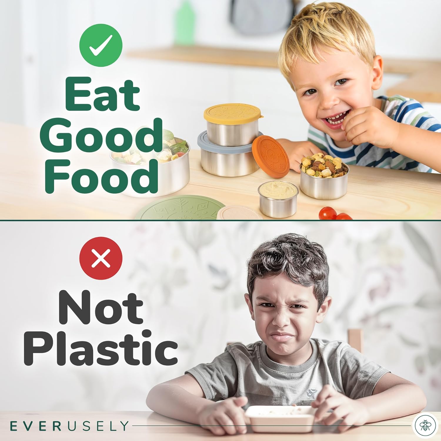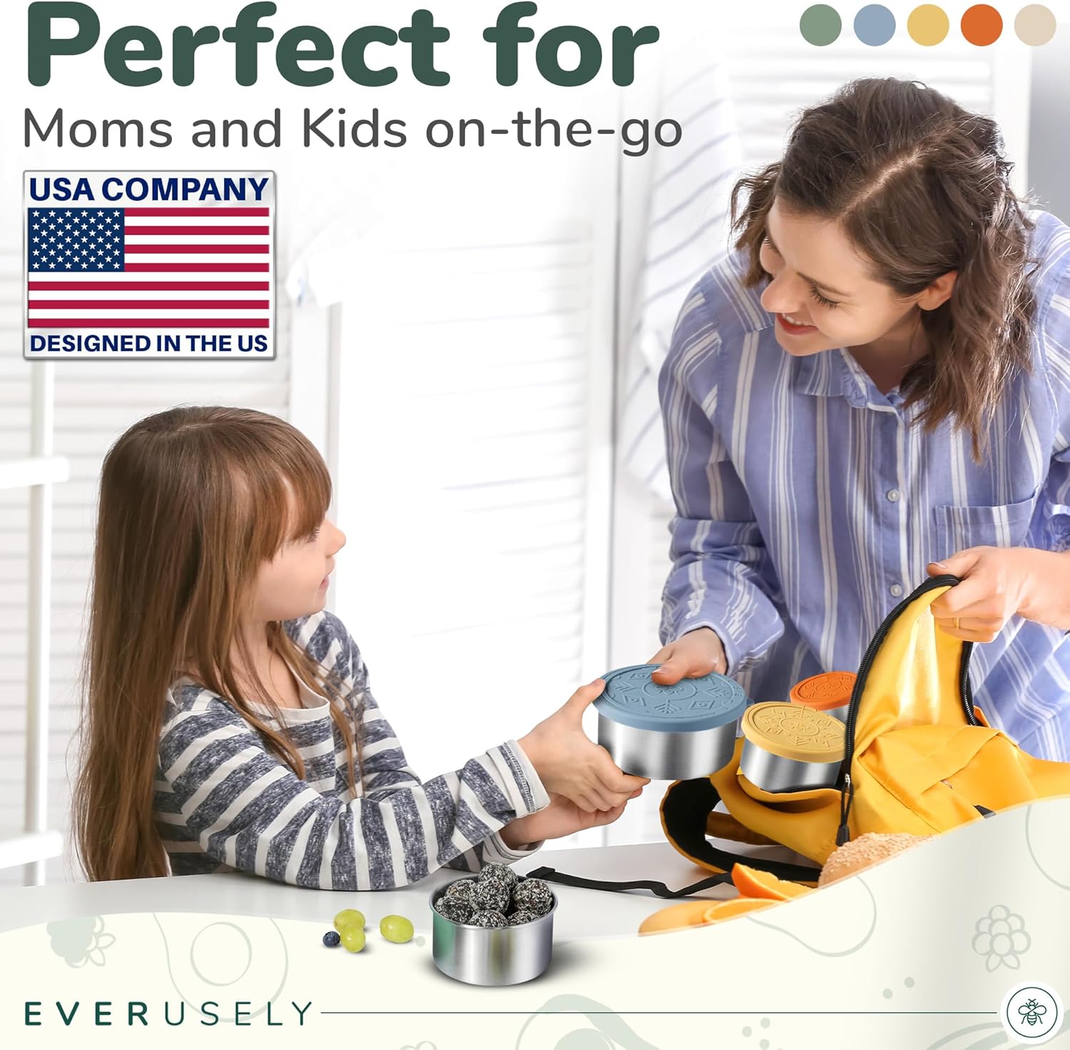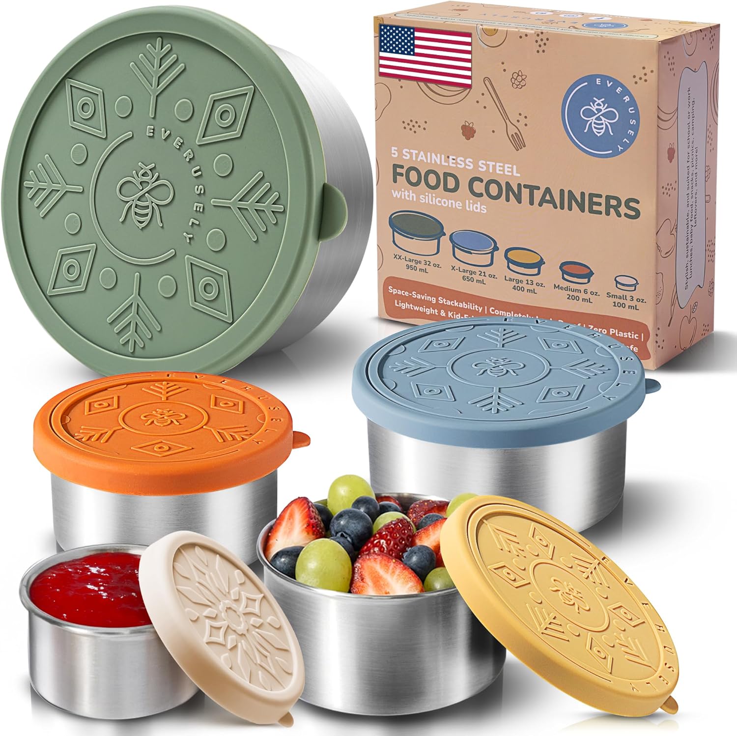 Everusely - Stainless Steel Containers with Lids - Set of 5, Muted Collection - Leakproof Stainless Steel Food Containers - Nesting Snack Holders - Metal Lunch Box - Portable & Reusable Meal Kit