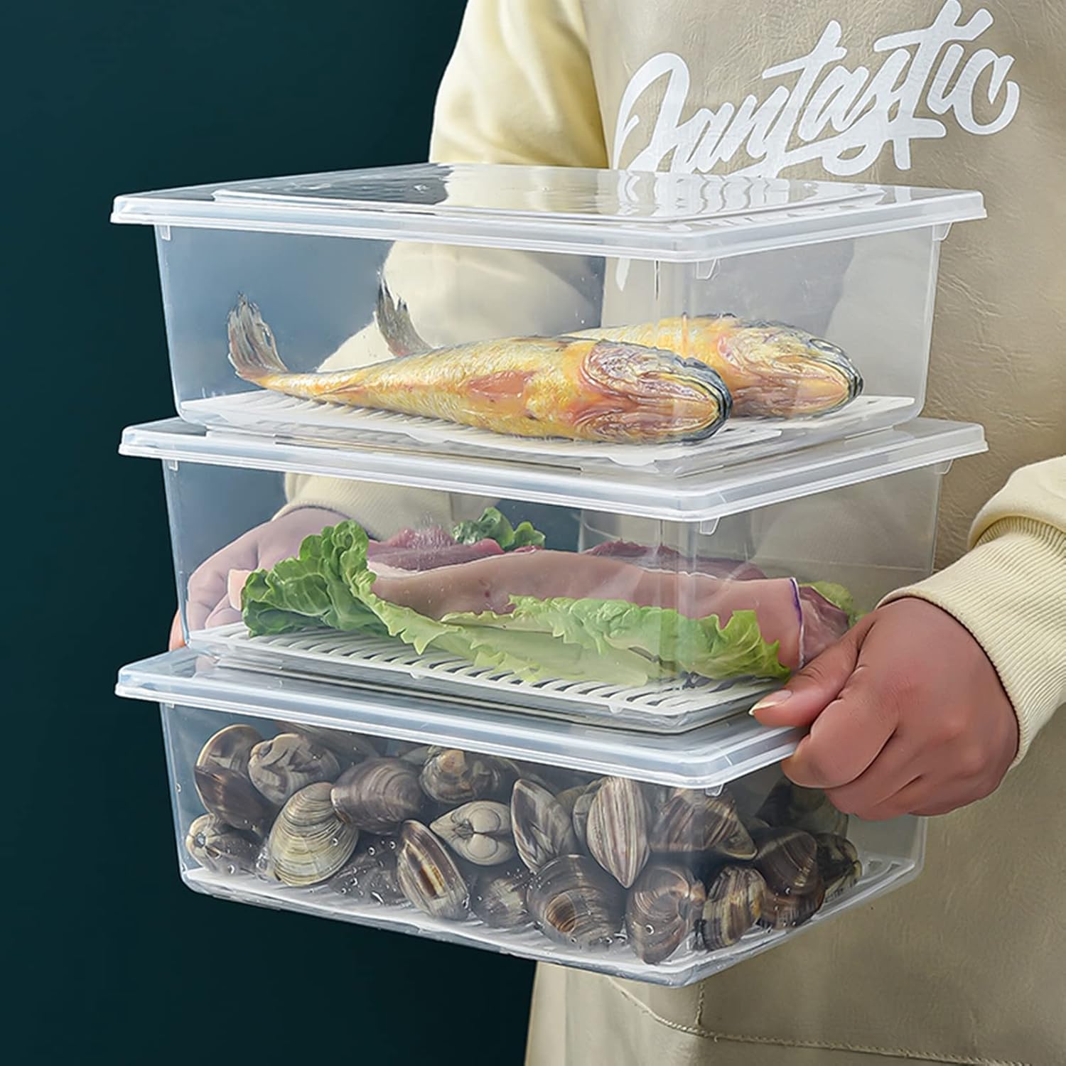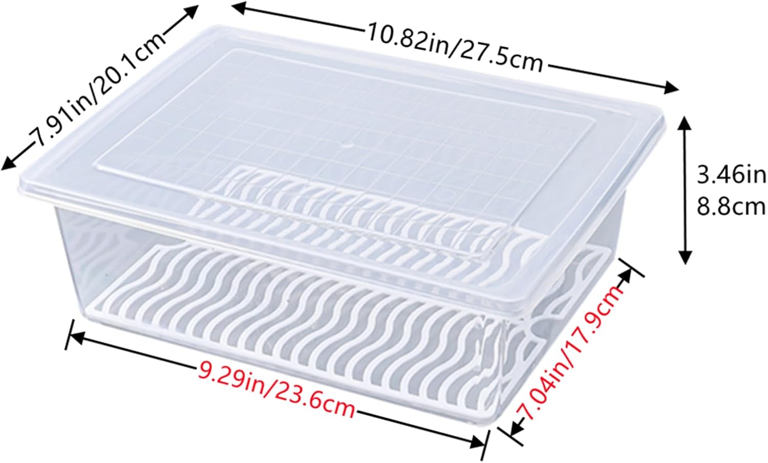 • Multiple Uses:Fridge Organizer Case with Removable Drain Plate, Tray to Keep Fruits, Vegetables, Meat, Fish etc. Out of The Drippings