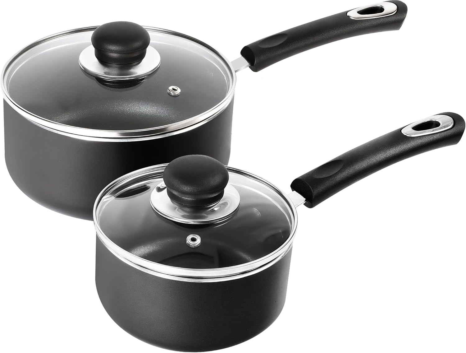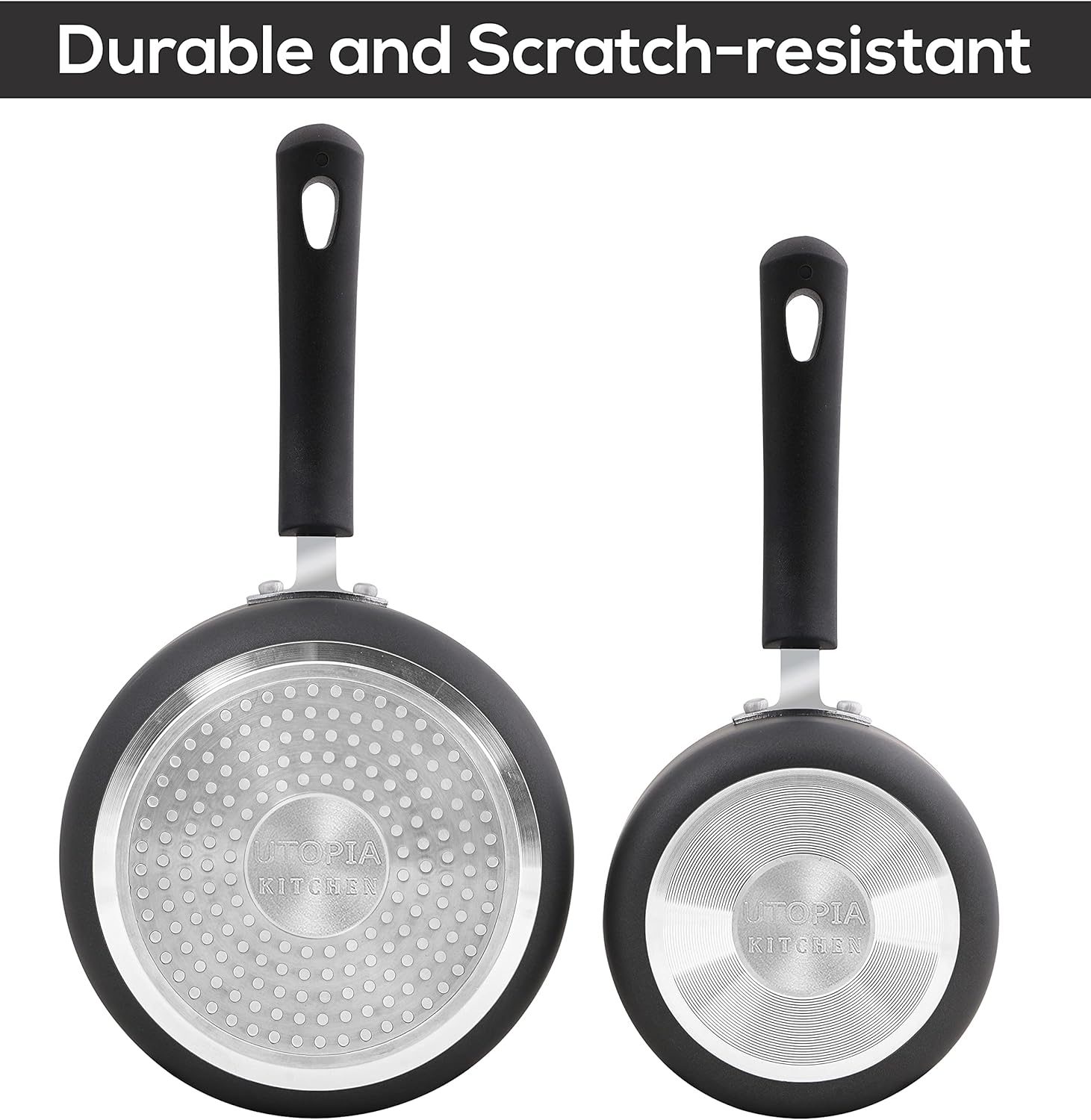 Utopia Kitchen Nonstick Stock Pot Saucepan Set with Lids, 1 Quart and 2 Quarts Multipurpose Stock Pots Set for Home, Kitchen or Restaurant, Grey & Black