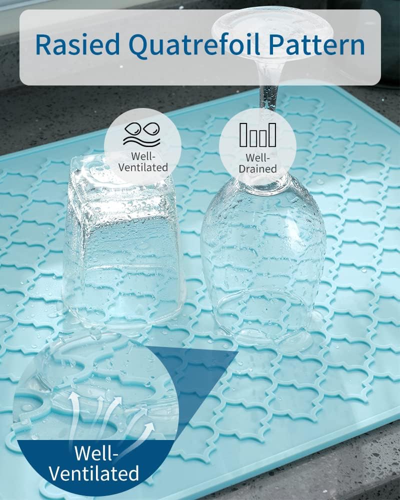 AMOAMI Dish Drying Mat,Heat-resistant,Easy Clean,Silicone Dish Drying Mats for kitchen Counter,Kitchen Gadgets Kitchen Accessories Kitchen Small Appliances (12" x 16", LIGHT BLUE)