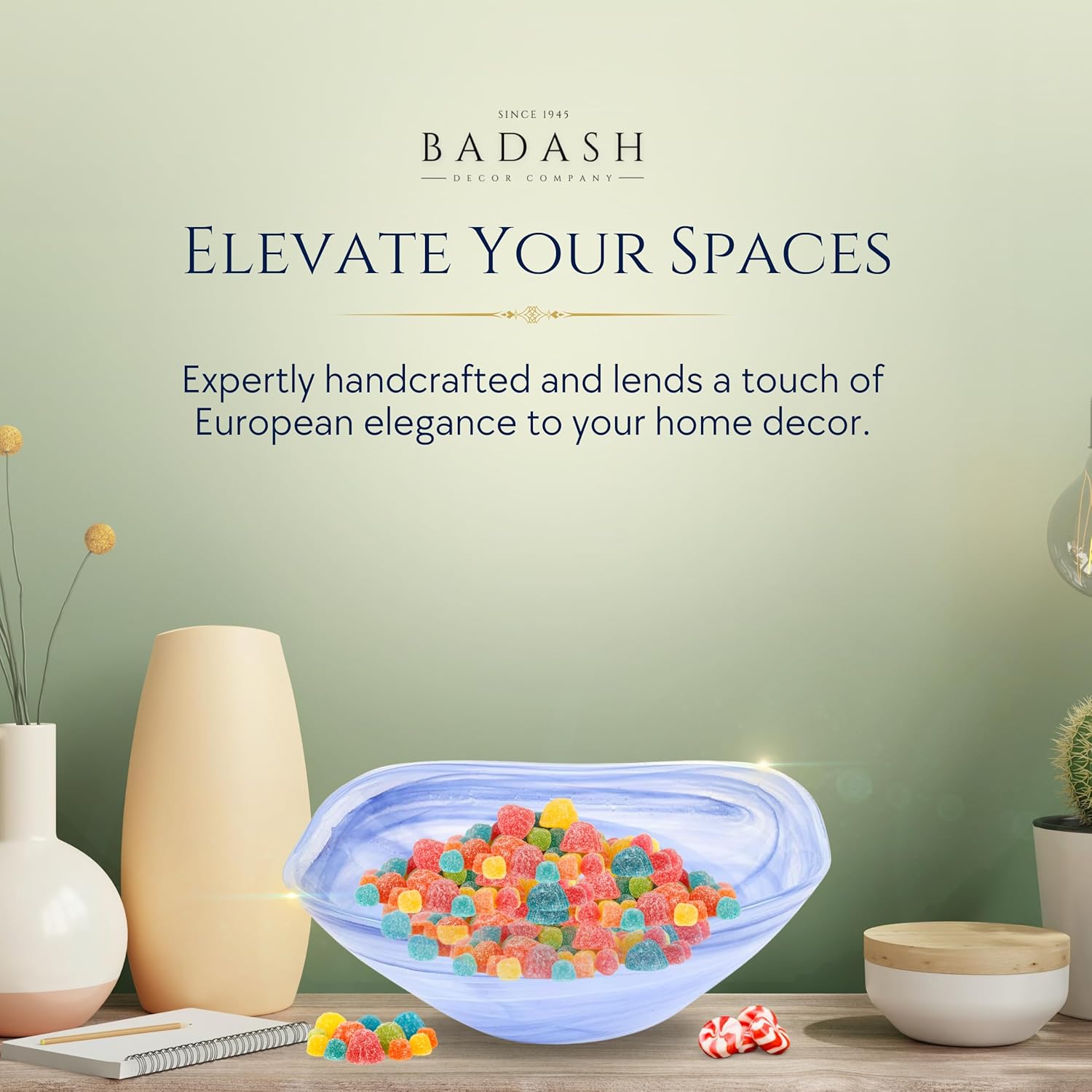 Badash Decorative Glass Serving Bowl, Alabaster Glass Centerpiece Fruit Bowl, Home Décor Table Accent Bowl, 10” Diameter, White & Blue