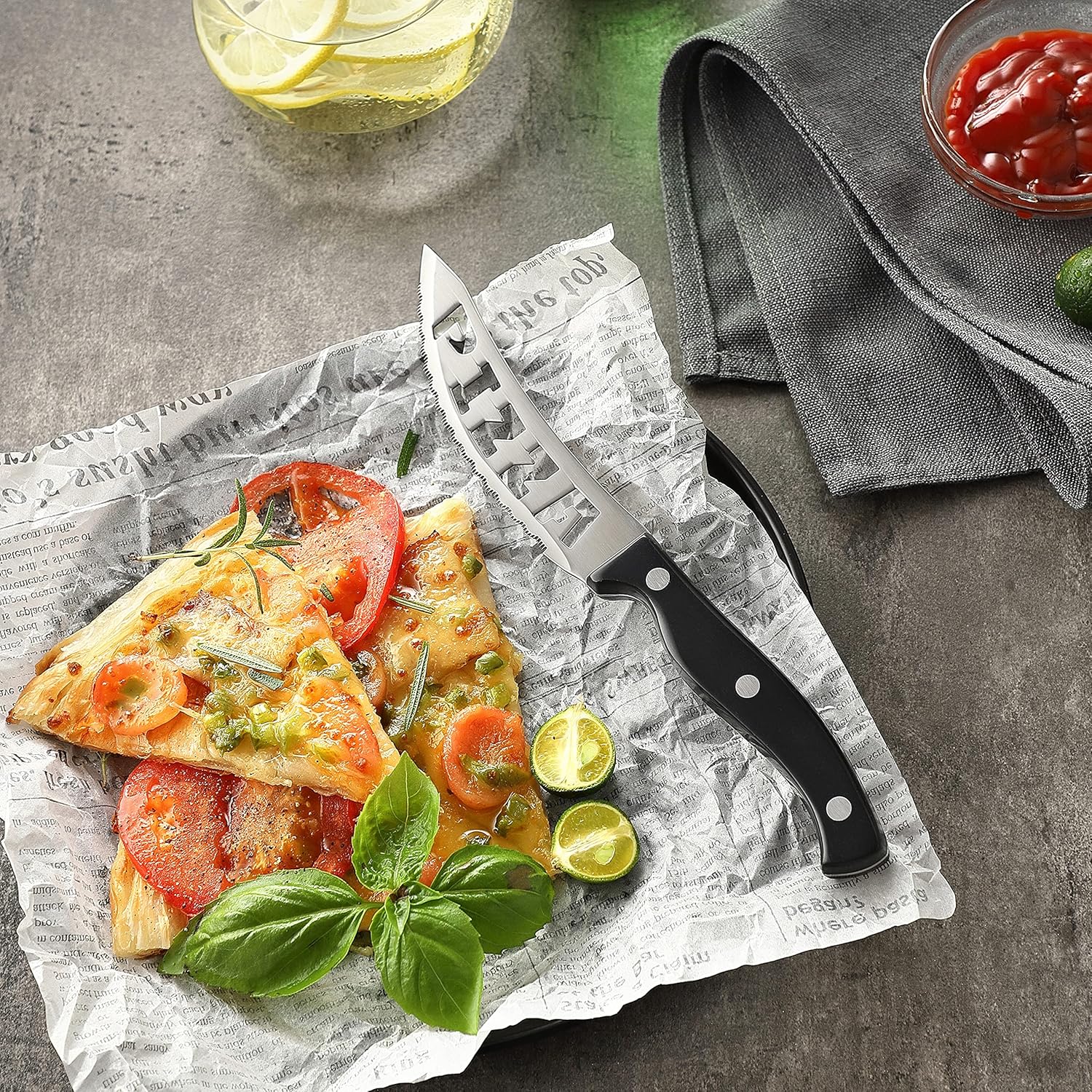 • CRAFTSMANSHIP - Full tang with stainless steel endcap and secured by triple rivets, this kitchen knife set is made to last for years. The ergonomically designed handle provides a comfortable grip, no more loose or fallen handle.