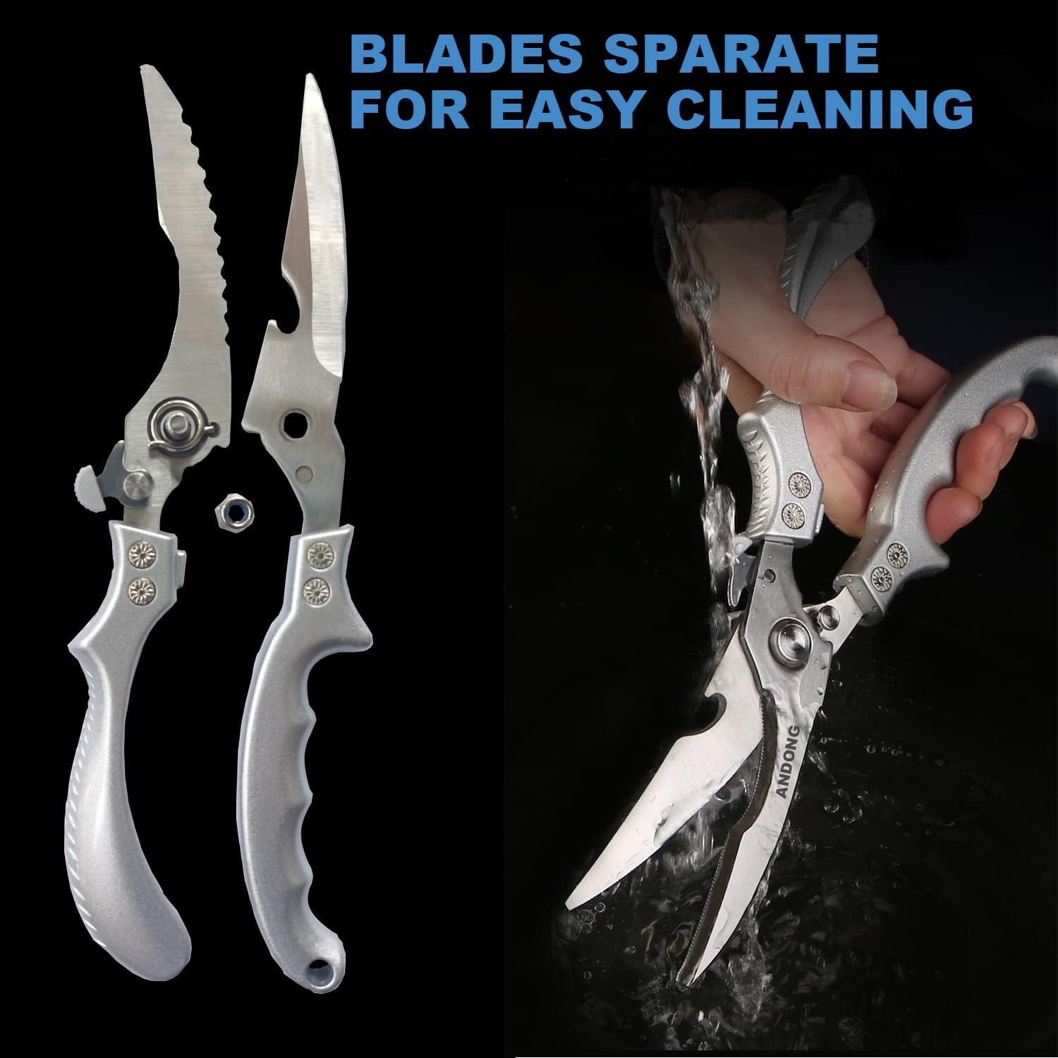 • The new upgraded meat shears heavy duty kitchen shears will be the best kitchen scissors you have ever used.ANDONG meat scissors heavy duty solve all the shortcomings of other scissors,the food scissors can easily cut not only hard bones,but also meat,soft objects like chicken skin.Super sharp stainless steel blade,and cuts literally everything.Ergonomic handle with easy to hold.Great quality for the money! Kitchen Essentials.Great gift for your favorite home chef.