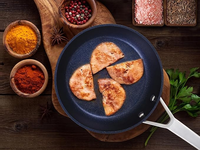 MsMk Frying pans nonstick with lid Blue, 10-inch Durable skillet, Titanium and Diamond Non Stick Non-Toxic Coating From USA, Even Heating, Easy Clean-Up, Comfortable Handle, Induction Compatibility