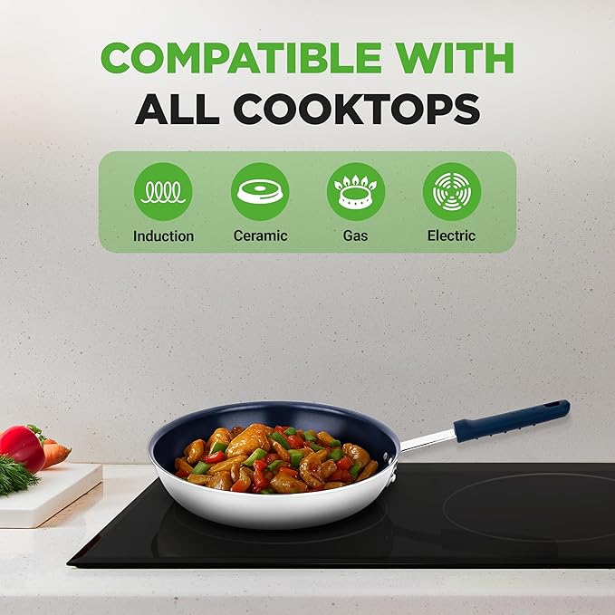 • COOKTOP COMPATIBILITY: Nutrichef's pots, pans, and skillets are safe and compatible with gas, electric, induction, and ceramic cooktops so you can cook your food however you like. It is also food-grade safe with an environmentally friendly construction.