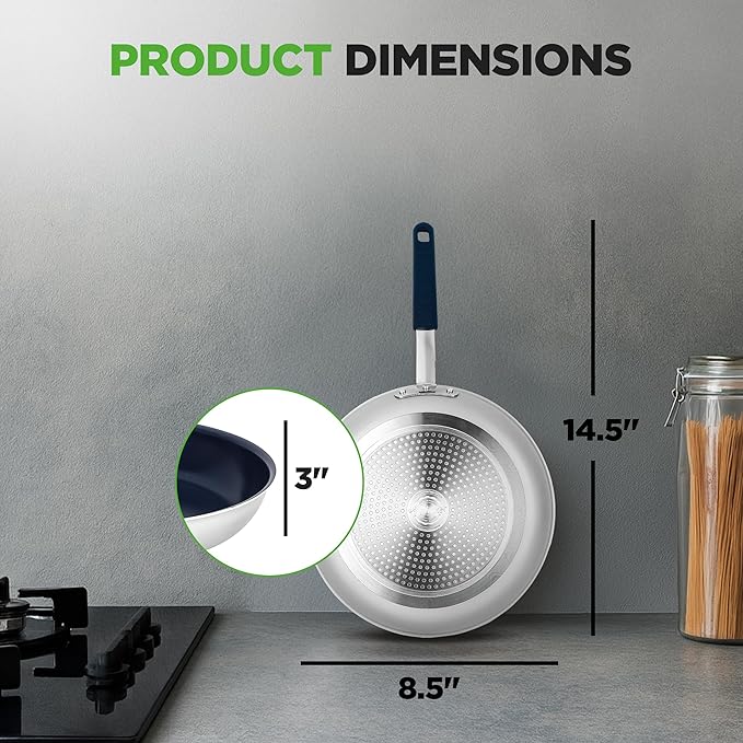• STYLISH MODERN KITCHEN COOKWARE DESIGN: Cook with style as this pan is made with a stylish modern look in mind. Meant to be professional home kitchenware, this also features comfortable cool-touch form-fitting handle grips for your convenience