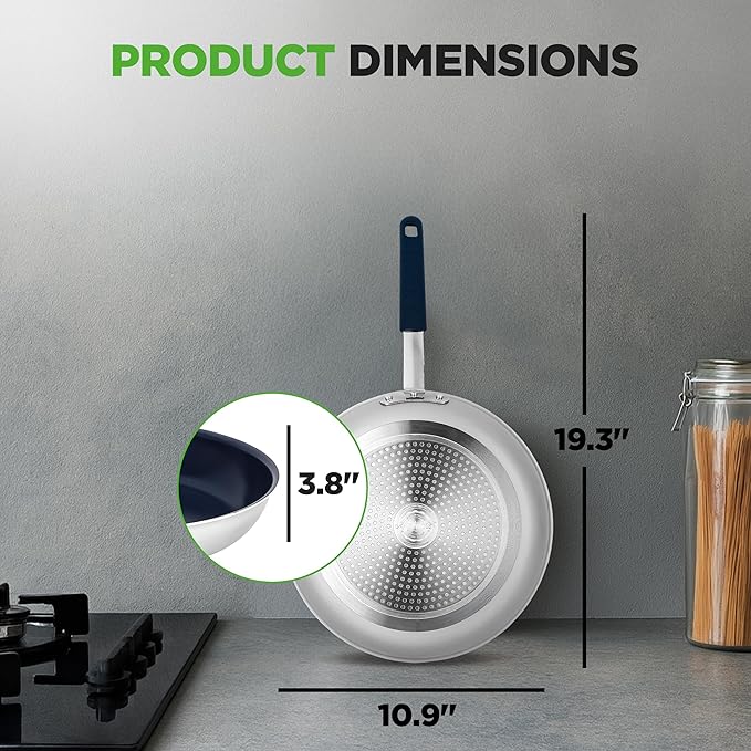 • STYLISH MODERN KITCHEN COOKWARE DESIGN: Cook with style as this pan is made with a stylish modern look in mind. Meant to be professional home kitchenware, this also features comfortable cool-touch form-fitting handle grips for your convenience