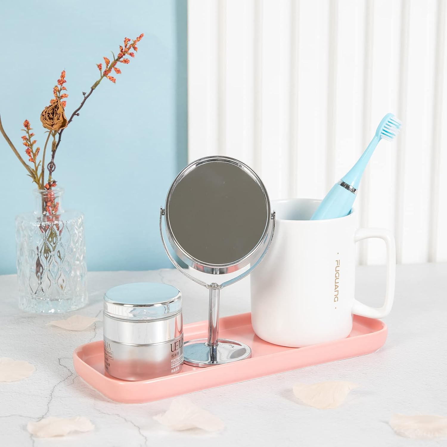 Ceramic Bathroom Tray,Kitchen Sink Organizer Tray,Cosmetics Holder (Pink)