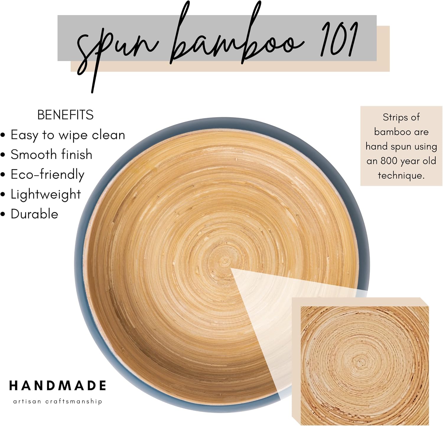 • Add the warmth of handmade, natural materials to your home while keeping a modern, sleek look and feel with this spun bamboo bowl, whether you need a fruit bowl for kitchen counter, decorative bowl for the living room, or centerpiece for the dining table.