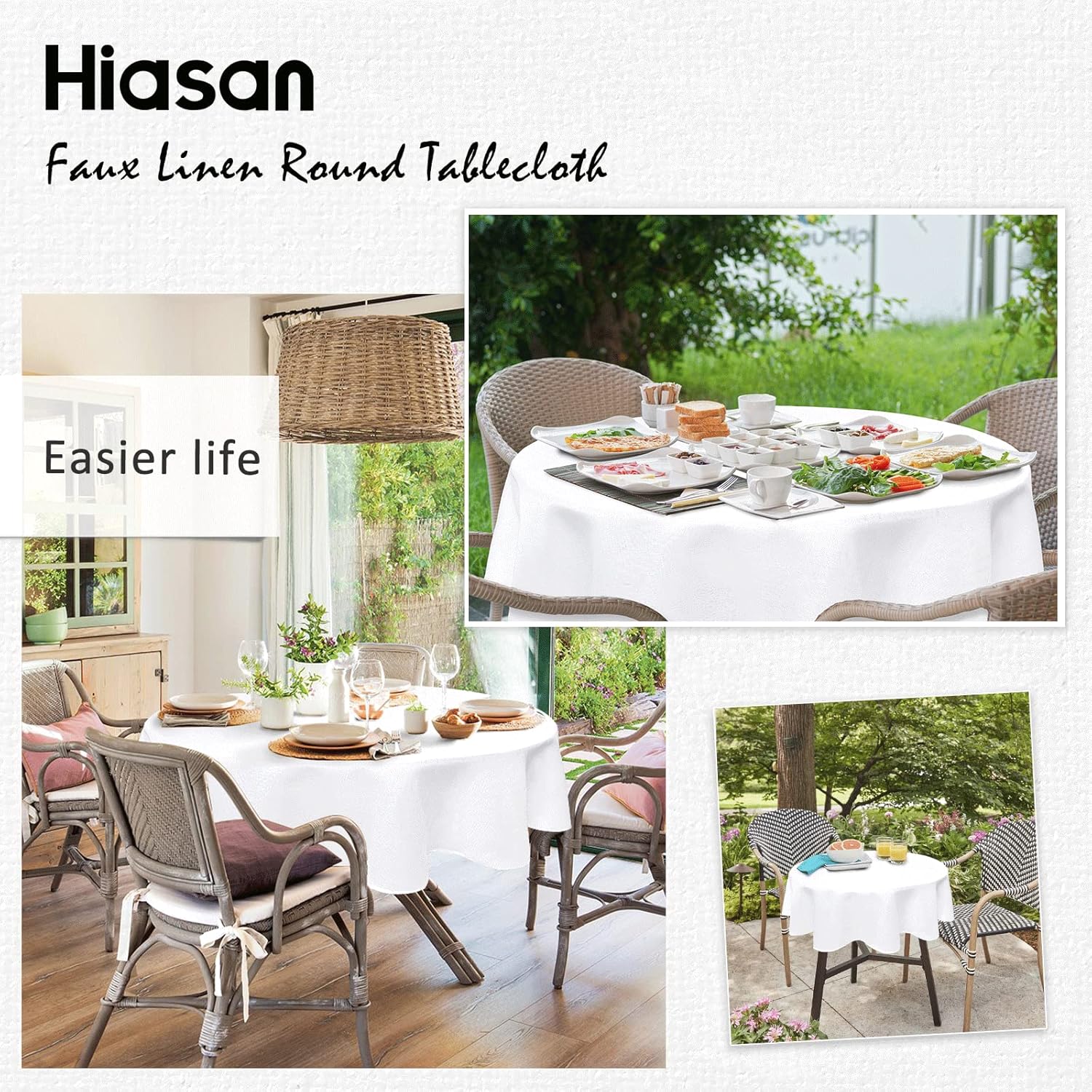 Hiasan Round Linen Tablecloth 60 Inch - Wrinkle and Stain Resistant Washable Polyester Fabric Table Cloth for Dining Room Kitchen Party, White