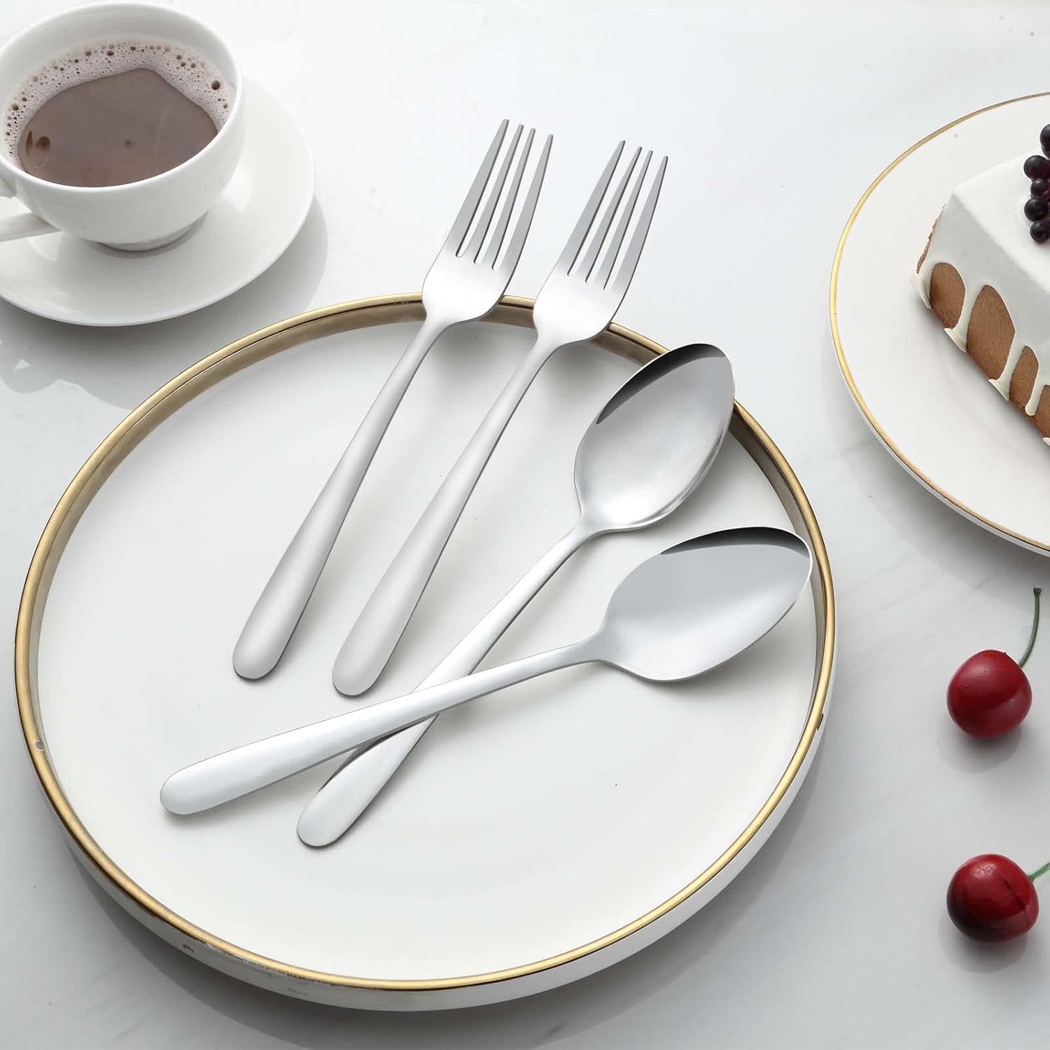 • Elegant Design: The forks and spoons silverware set has a classic looking and fluid lines that will not go out of style, which also has smooth edges with no rough spots to ensure the safety of your mouth. Meanwhile, the silverware set is convenient and comfortable to use, which can elevate everyday meals into a fine dining experience