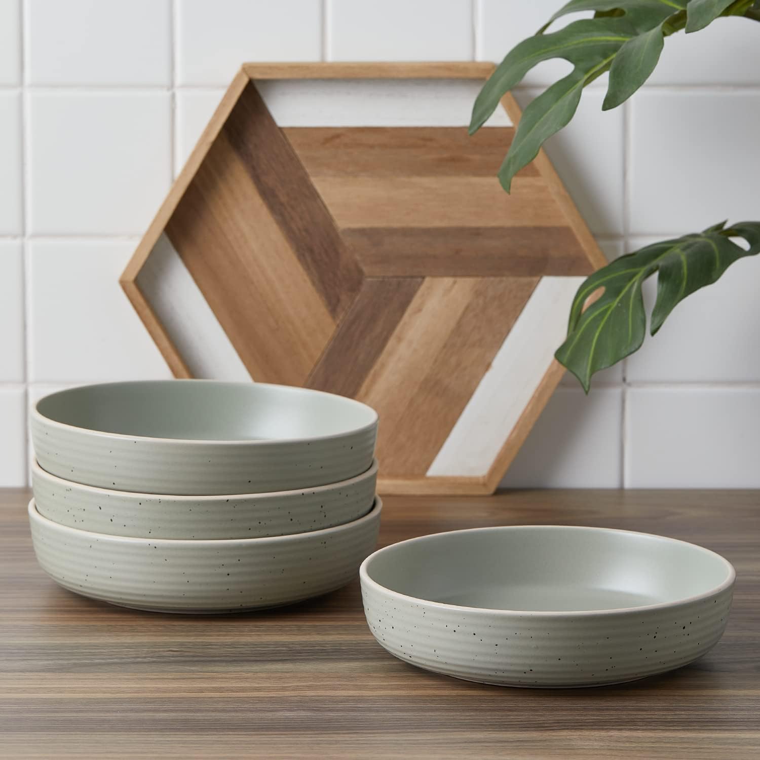Stone Lain Lauren Stoneware, Rustic Plates and Bowls Set, Dinnerware, Service for 8, Speckled Green, Dishwasher & Microwave Safe, 32-Piece