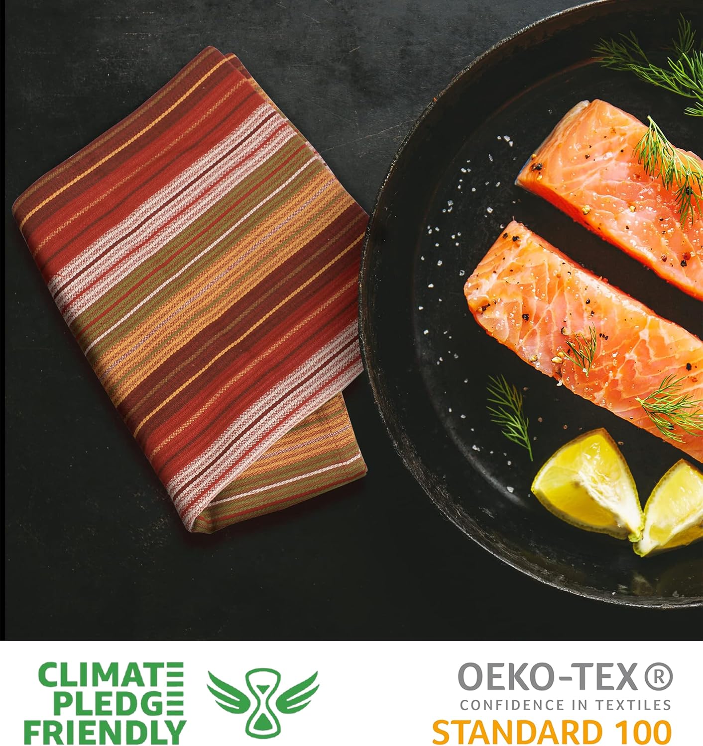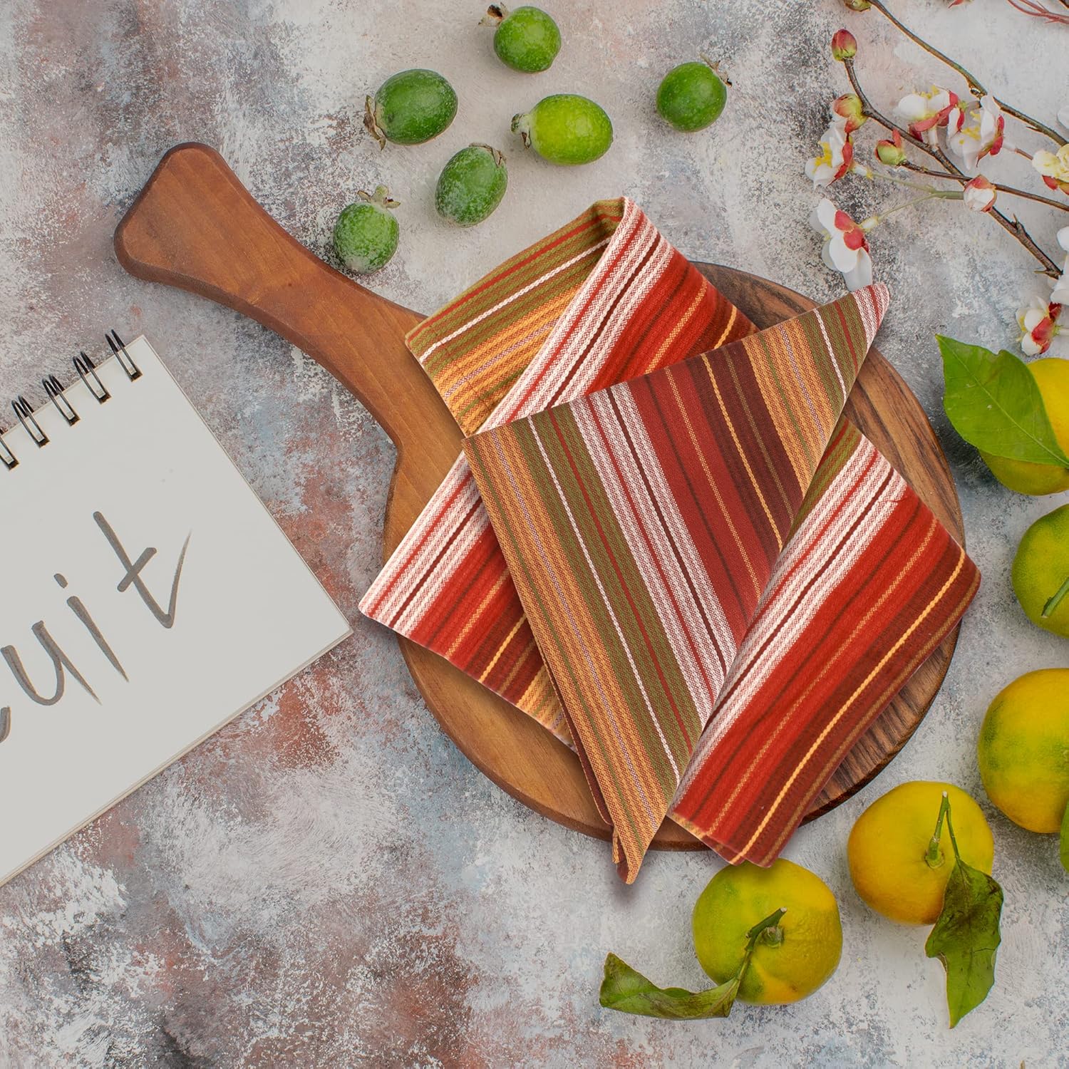 Urban Villa Fall Stripes Kitchen Towels Set of 6 20x30 Inches Over Sized Premium Quality100% Cotton Thanks Giving Day Dish Towels Mitered Corners with Hanging Loop Harvest Stripes Dish Cloths