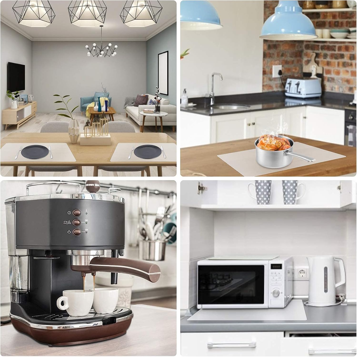 • Size :Sized at 28" x 20"x 0.03" (Length x Width x Thickness), large enough to protect your counter top, it can be placed under the microwave, air fryer, induction stove, toaster oven, coffee maker etc.