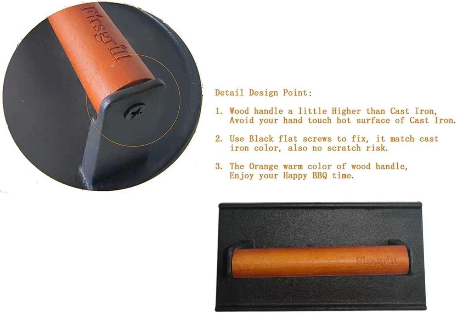 Firsgrill 8.3"×4.3" Heavy-duty Cast Iron Grill Burger Press and Meat Steak with Wood Handle for Blackstone Camp Chef Pitboss Weber Griddle Grills (Rectangle)