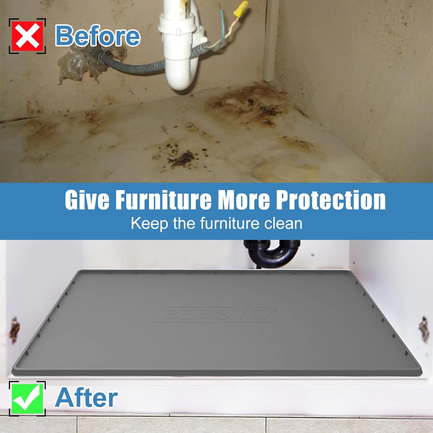 • 【Multi-Function Heavy Duty Mat】BEESVO Under sink mat are not only for kitchen cabinets, but also for bathroom cabinets, pets, crafts and anything else to prevent stains and spills!