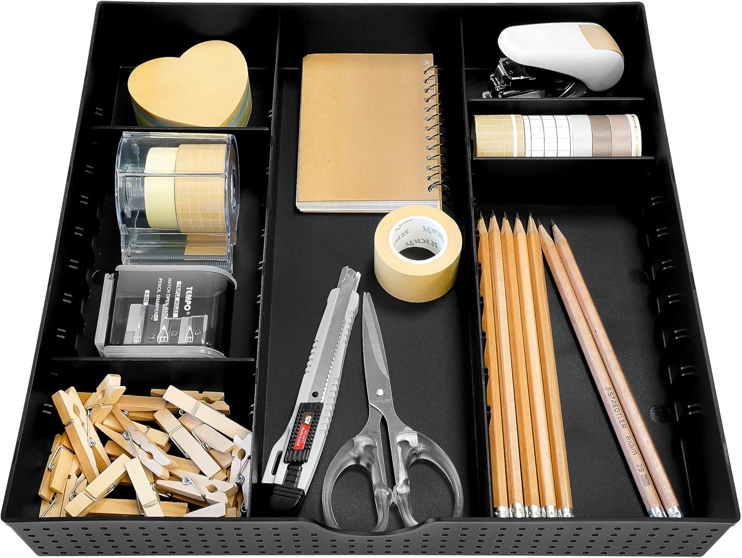 • Adjustable Drawer Organizer: Our drawer organizer has 3 sections with 2 sections adjustable perfect for desk accessories, pencils, pens, cosmetic makeup and others