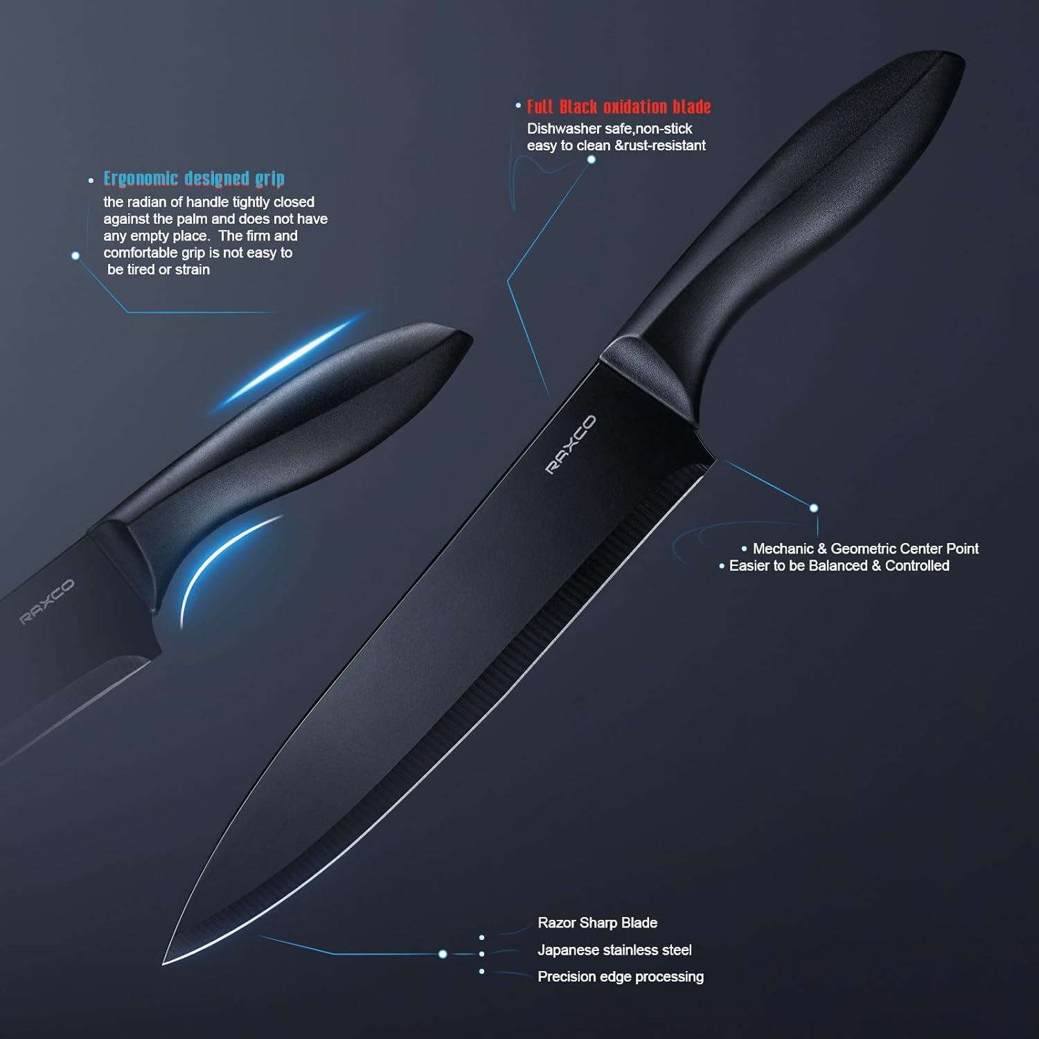 RAXCO Kitchen Utensils Set,18-Piece Cooking Tools and Sharp Knives,Stainless Steel Holder and Cutting Board