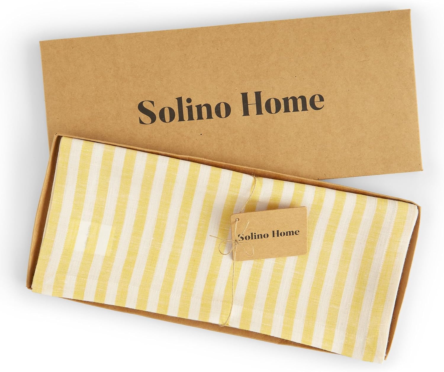 Solino Home Linen Table Runner 120 Inches Long - Amalfi Stripe, 100% Pure Linen Primrose Yellow and White Table Runner 14 x 120 Inch for Dining