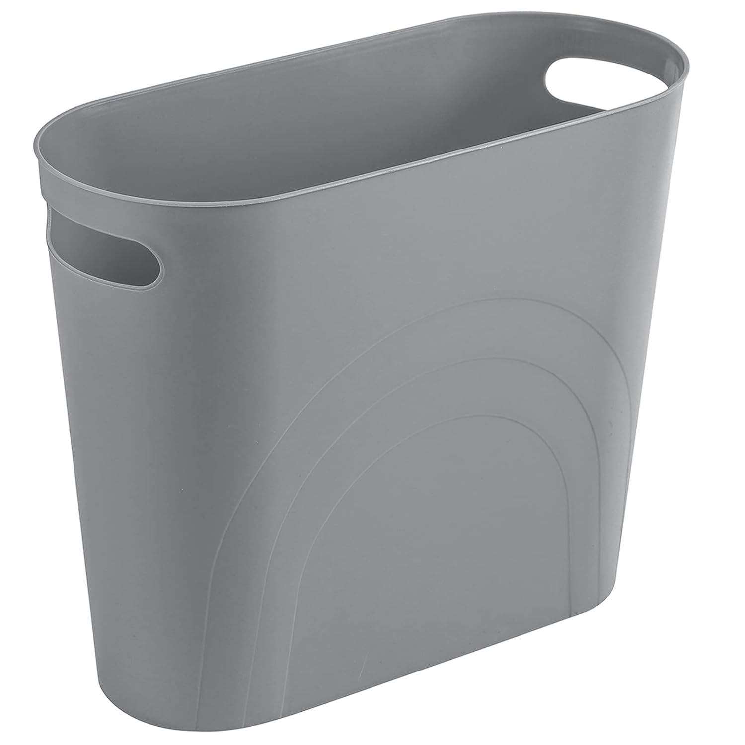 rejomiik Small Trash Can, 3.5 Gallon Slim Garbage Can Plastic Waste Basket with Handles Container Bin for Narrow Spaces Bathroom, Bedroom, Kitchen, Office at Home, Grey