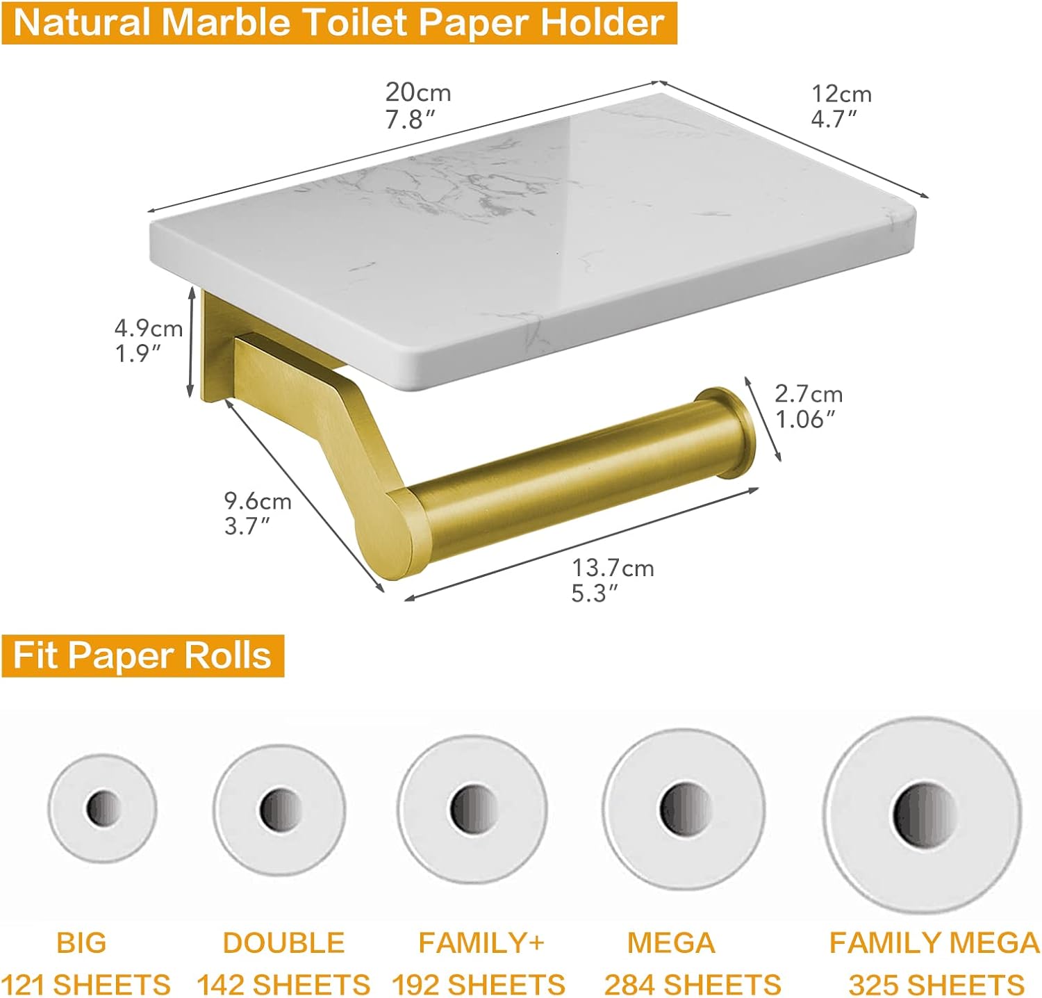 • Unique Natural Marble Shelf:Fine sanding of the edges,Smooth touch to prevent bumps,All natural stones are products of nature.Each marble has a different natural and attractive texture,the uniqueness of each marble shelf gives this paper holder a special charm.