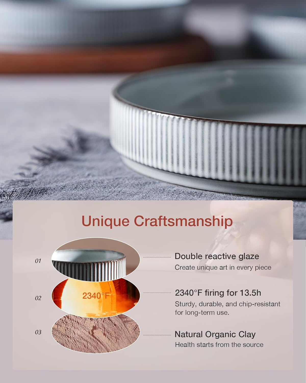• WITHSTAND THE TEST OF TIME: Made from organic and natural clay, these cereal bowls are fired at 2340 °F for 13.5 hours, resulting in a sturdy, long-lasting, and chip-resistant product designed for long-term use
