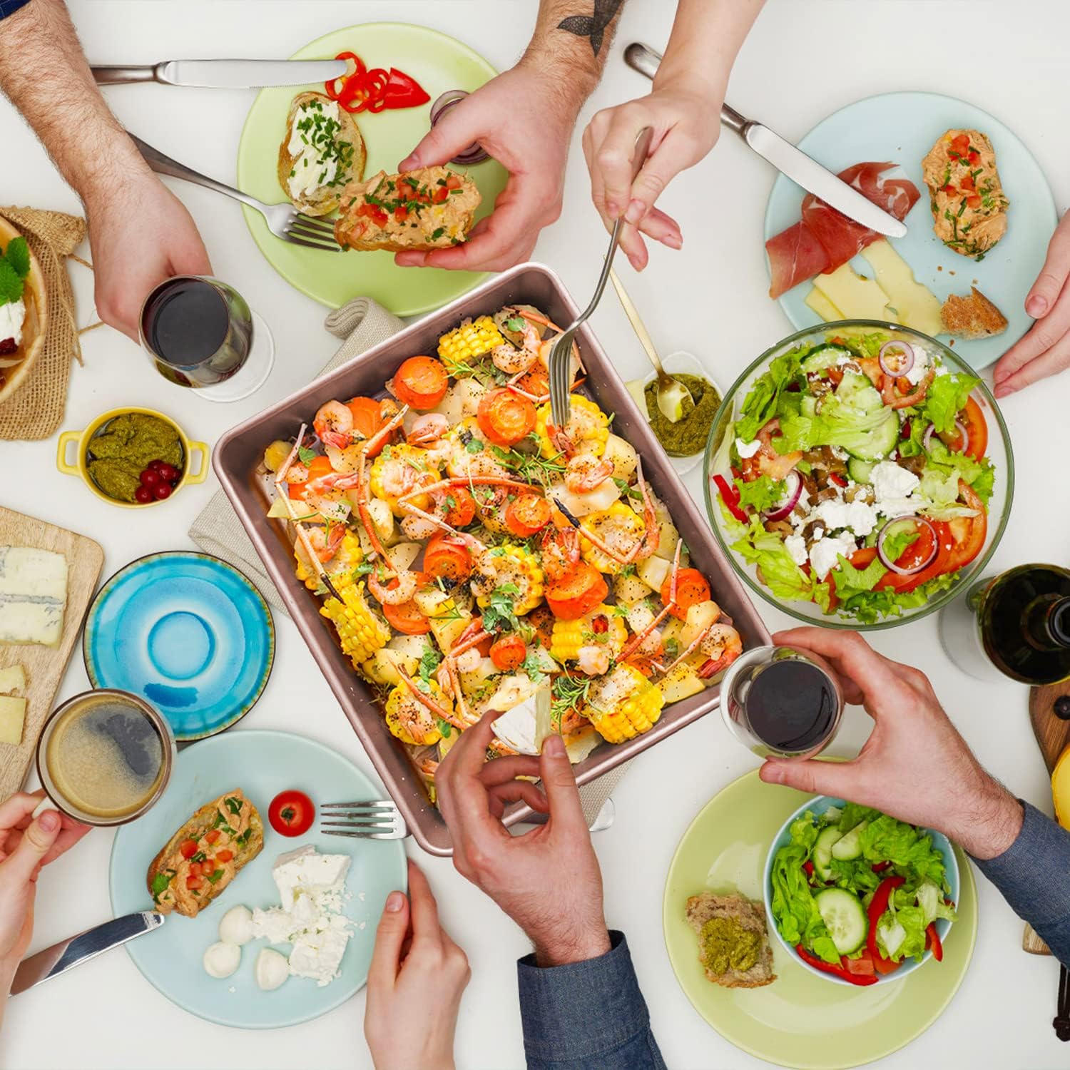 • Non-stick, Easy to Clean- The non-stick baking sheet has great mirror finish to reduce the risk of food sticking, easy to release the food while effectively reducing grease adsorption, makes it easy to clean up, just rinse the rectangle cake pan oven pan under water or run through the dishwasher