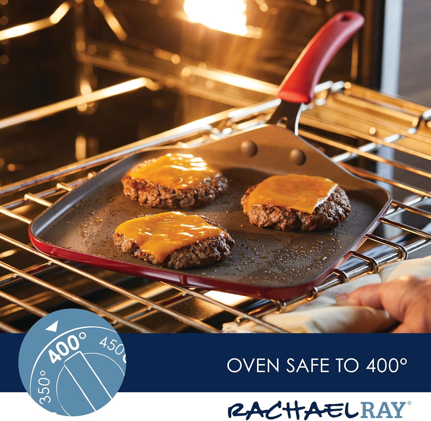 • WHAT YOU GET: This versatile 11-inch nonstick square griddle pan from Rachael Ray is ideal for home chefs looking for performance with flair in a stylish and easy to clean kitchen griddler