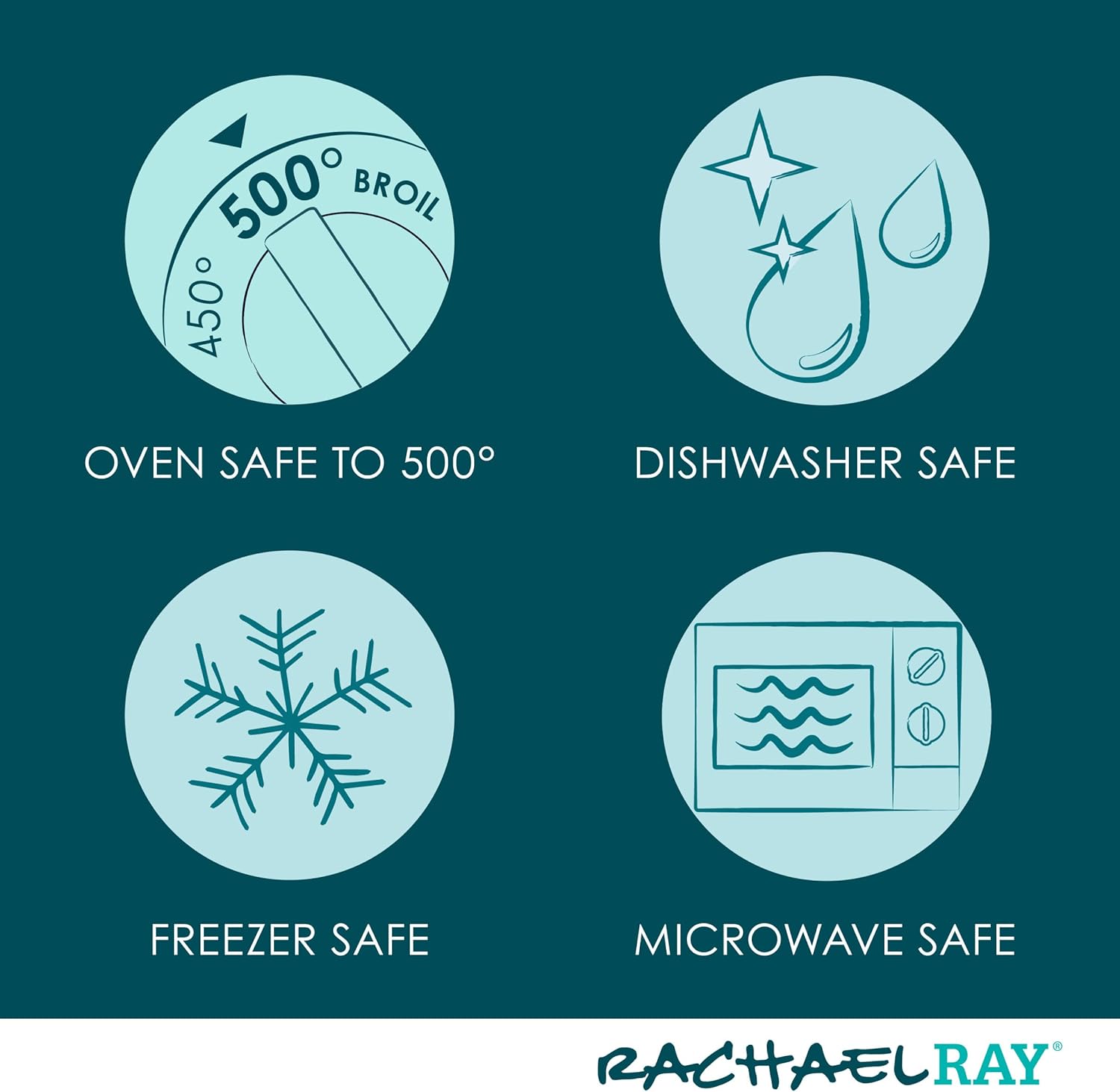 • KITCHEN FRIENDLY STORAGE: Rachael Ray's round bakers are crafted from durable ceramic for stylish and practical baking and serving from oven to table