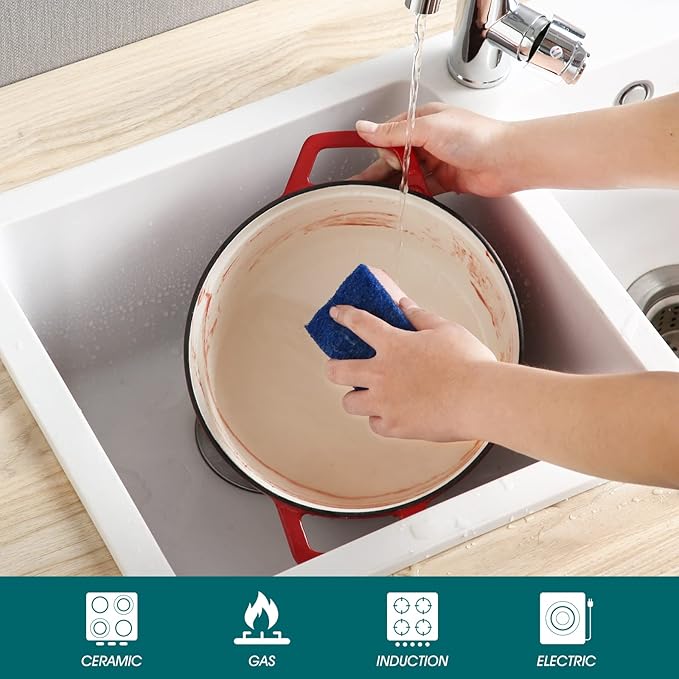 • 【One Pot for Multiple Use - Suitable for Families of 1-3 People】This 3.5 Quart vancasso enameled cast iron dutch oven is great for beginners or pros. It is resistant to acidic and alkaline substances, and you can use it to marinate food before cooking (prepare, cook, and serve food in the same pot). Safe for braising, simmering, baking, broiling, and roasting on gas, electric, ceramic, glass top, and induction stoves (not including microwave ovens); oven safe to 500°F.