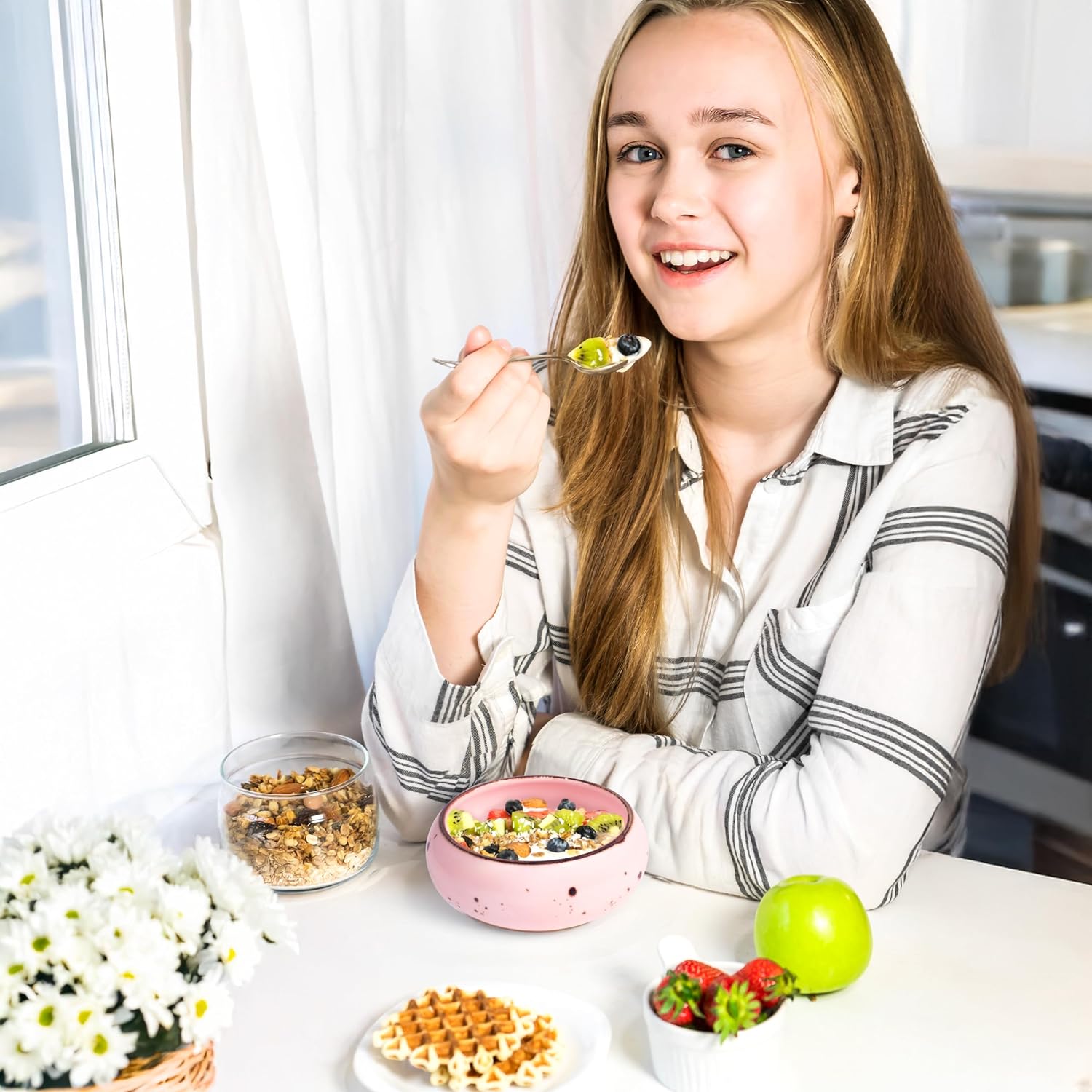 • EASY TO CLEAN AND MAINTAIN: Simplify maintenance with our stackable Dessert Bowls. Our Bowls are smooth glaze resists food particles, makes cleaning easy. Because of the increased strength of our glaze, your knives and forks won't scratch it. Glossy crystalline coating that can withstand scratches. Our bowl is easy to clean and safe for use in the dishwasher, freezer, microwave, and oven. It's also durable and long-lasting. Perfect for optimizing kitchen space without compromising functionality.