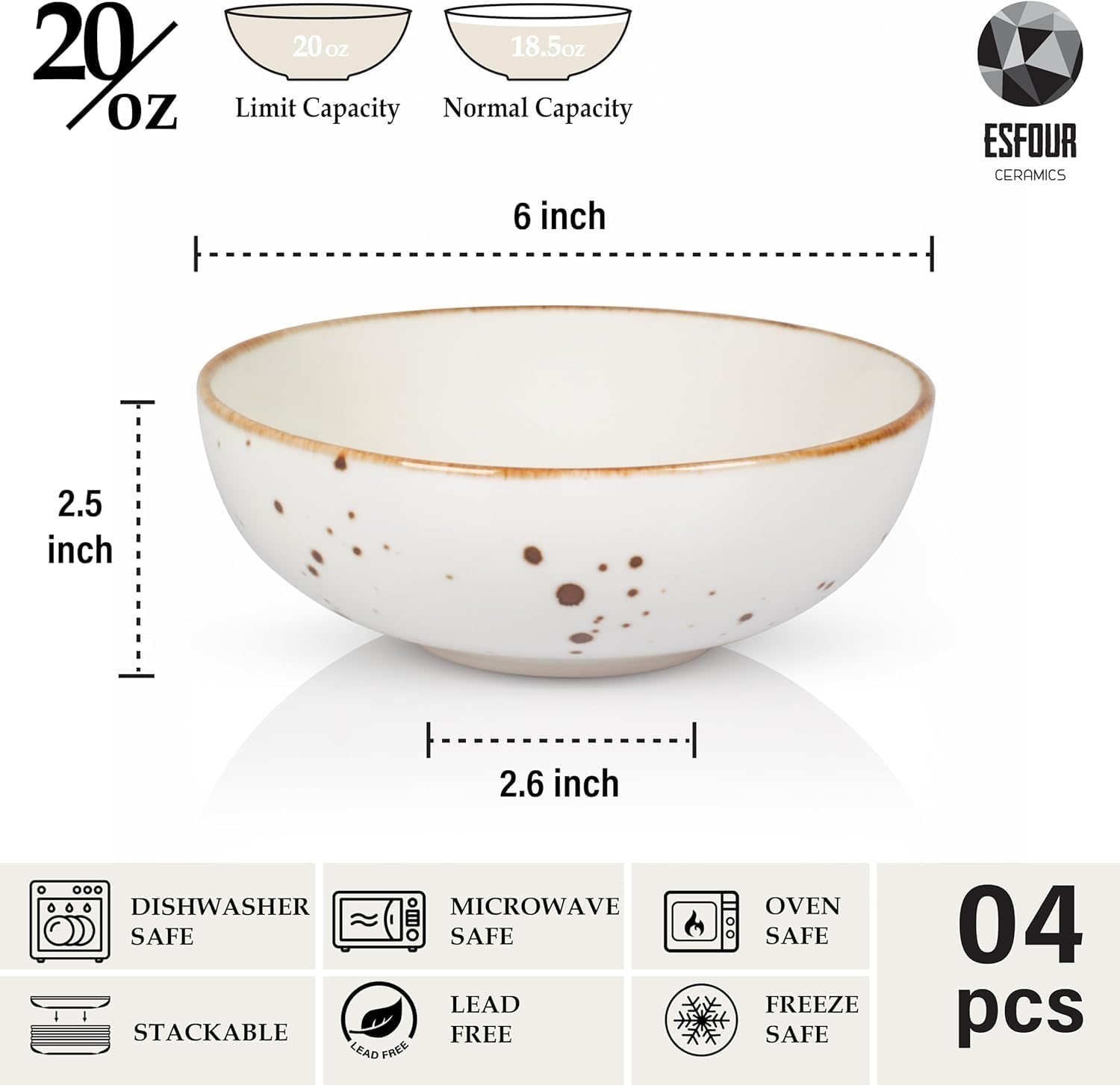 Esfour Premium Porcelain Bowl Collection | Durable, Microwave & Dishwasher Safe | Ideal for Cereal, Pasta, Salad & Desserts (Classic Assorted Color, Cereal Bowl 4pcs)