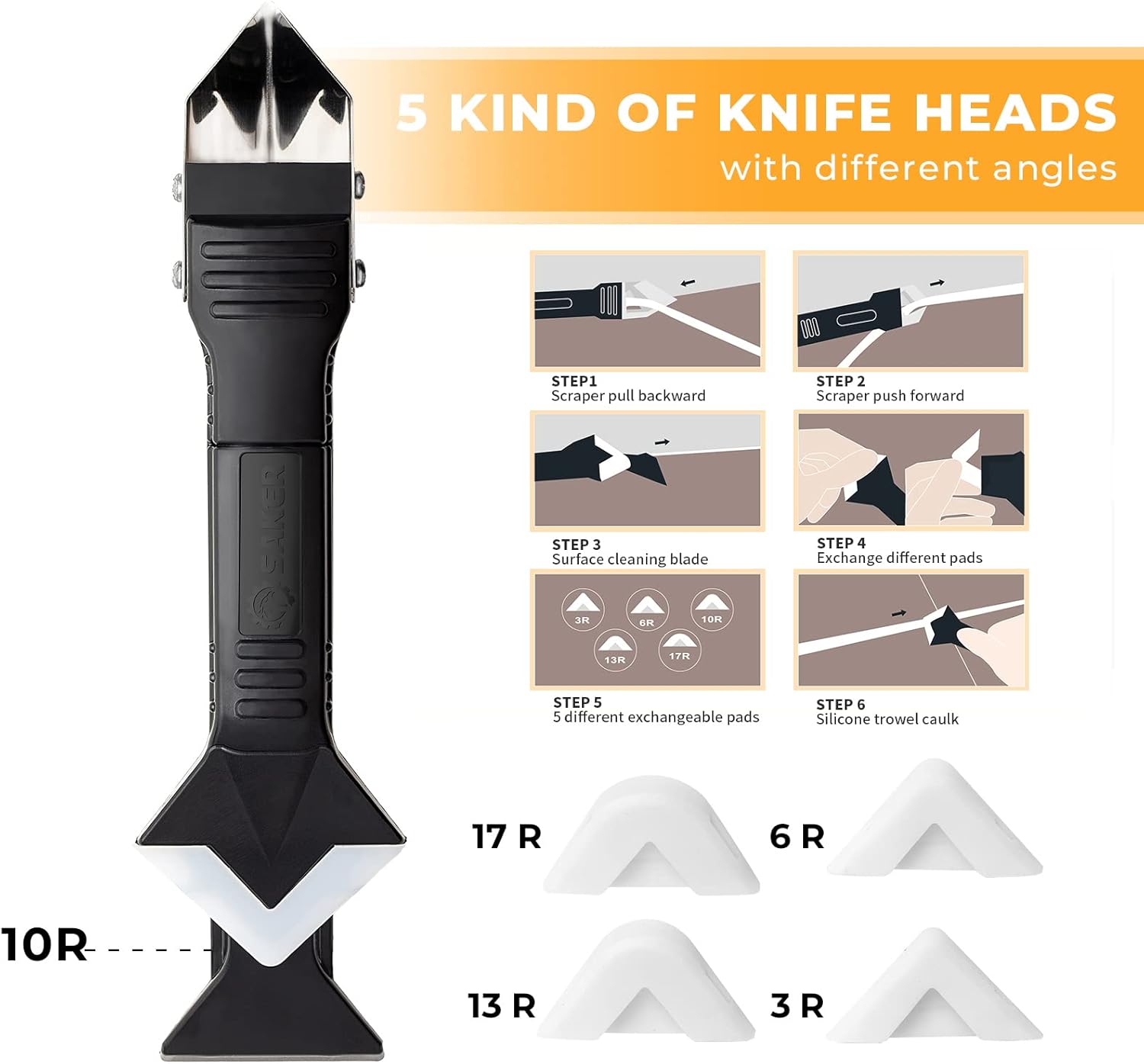 • 【Perfect Choice】Saker caulking tools kit is great product for removing and spreading caulk, improving the agglutinating quality and the aesthetic sense of surface.