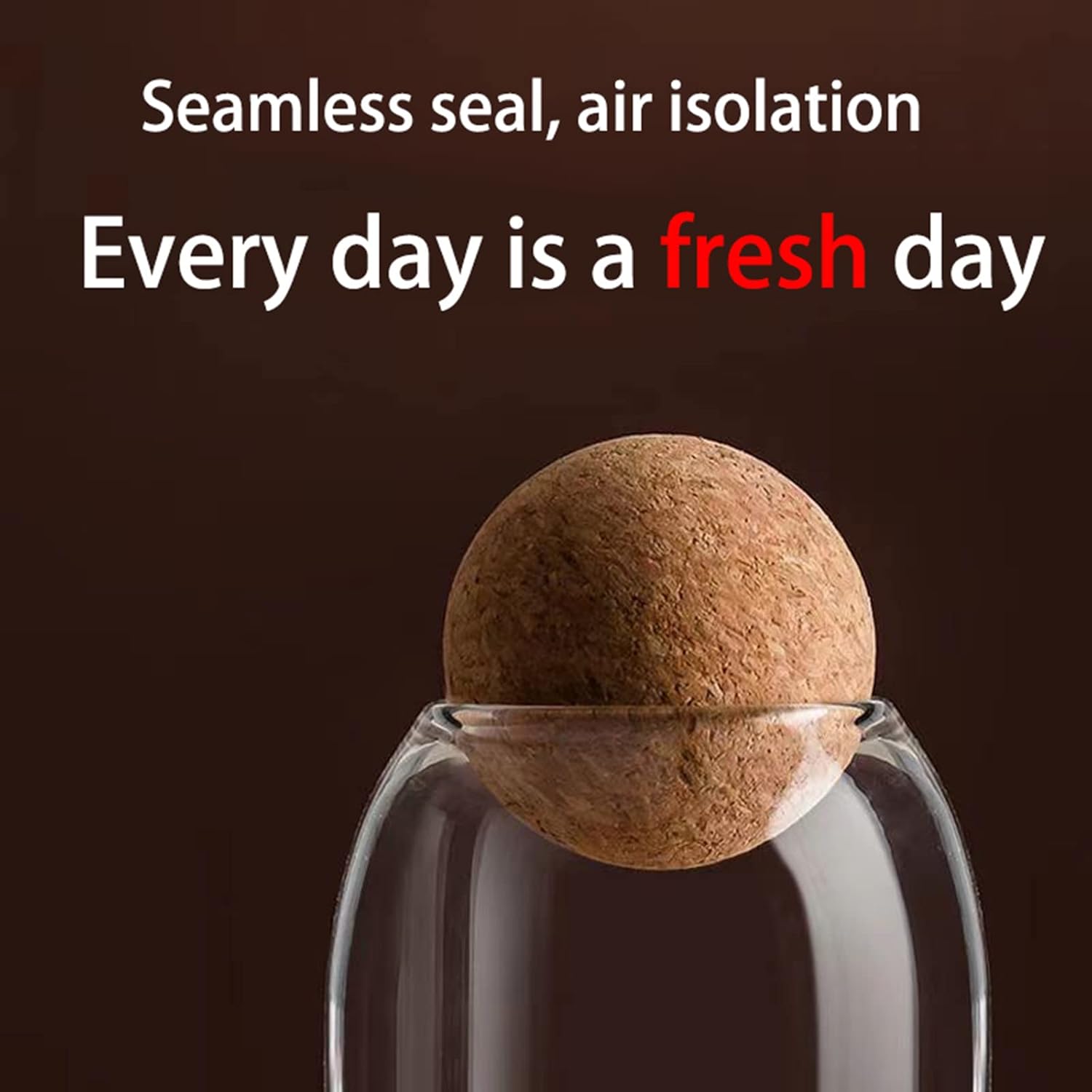 • ⭐Sealed Cork: Using a unique ball shaped cork as a lid of candy jar, which is produced in the oak of the Mediterranean Sea on the edge of Portugal, with a wooden fragrance, seamless sealing. It can isolate the air to create a moisture-proof environment, keep the contents dry and ensure the freshness of the food.