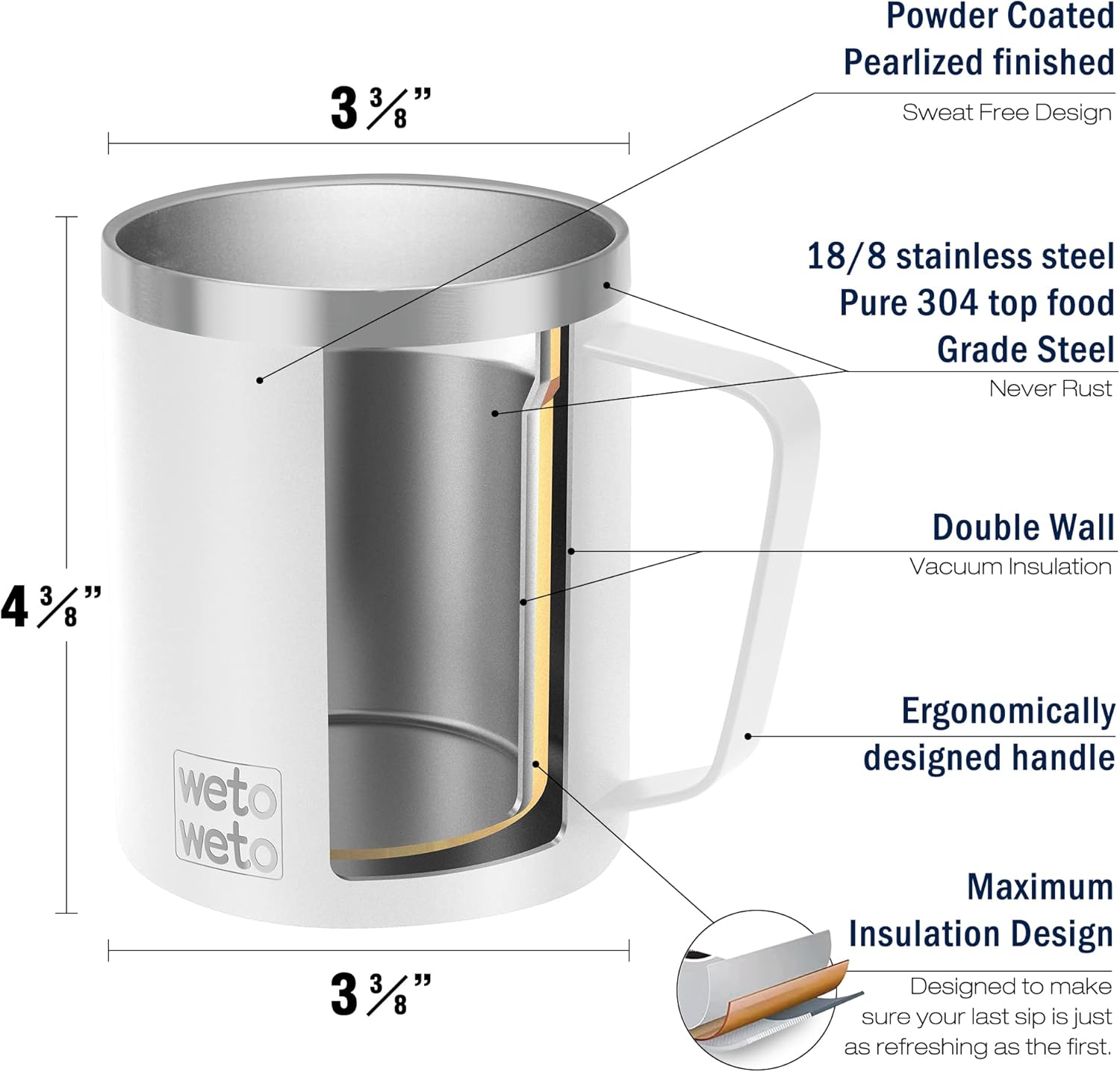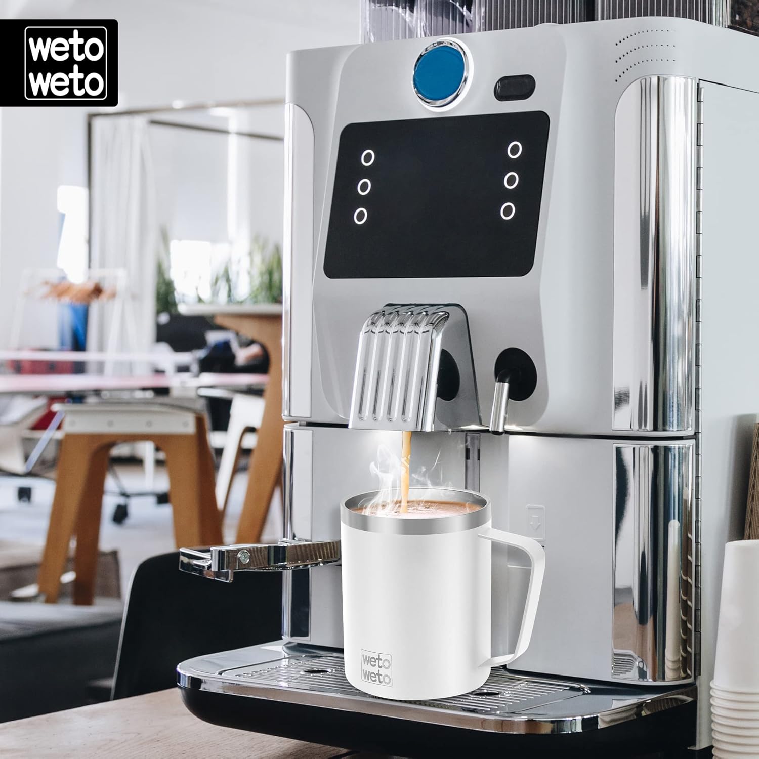 WETOWETO 14 oz Coffee Mug, Vacuum Insulated Camping Mug with Lid, Double Wall Stainless Steel Travel Tumbler Cup, Coffee Mugs Outdoor, Powder Coated White