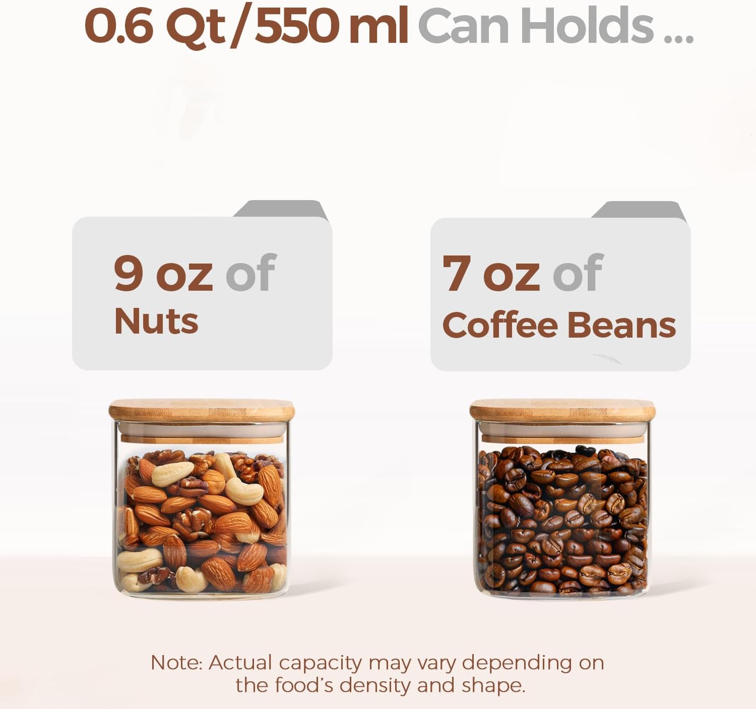 • Size For Subpackage: The 0.6 Qt jars are good to store family size food for maximum freshness and convenience in cabinet and pantry; Note: The small jars is safe in dishwasher while the wood lid is hand washing only! The lid only clean with a damp cloth