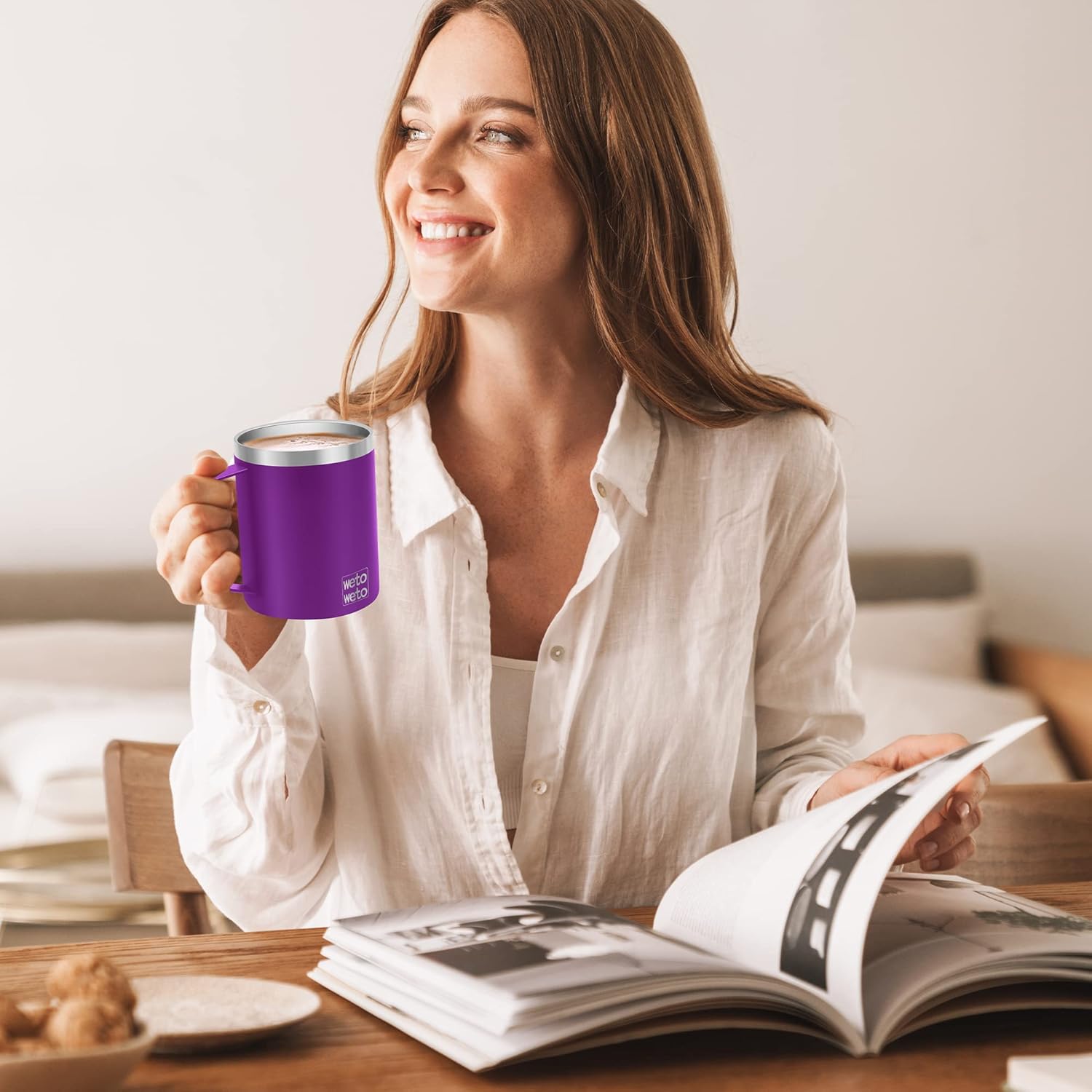 WETOWETO 14 oz Coffee Mug, Vacuum Insulated Camping Mug with Lid, Double Wall Stainless Steel Travel Tumbler Cup, Coffee Mugs Outdoor, Powder Coated Purple