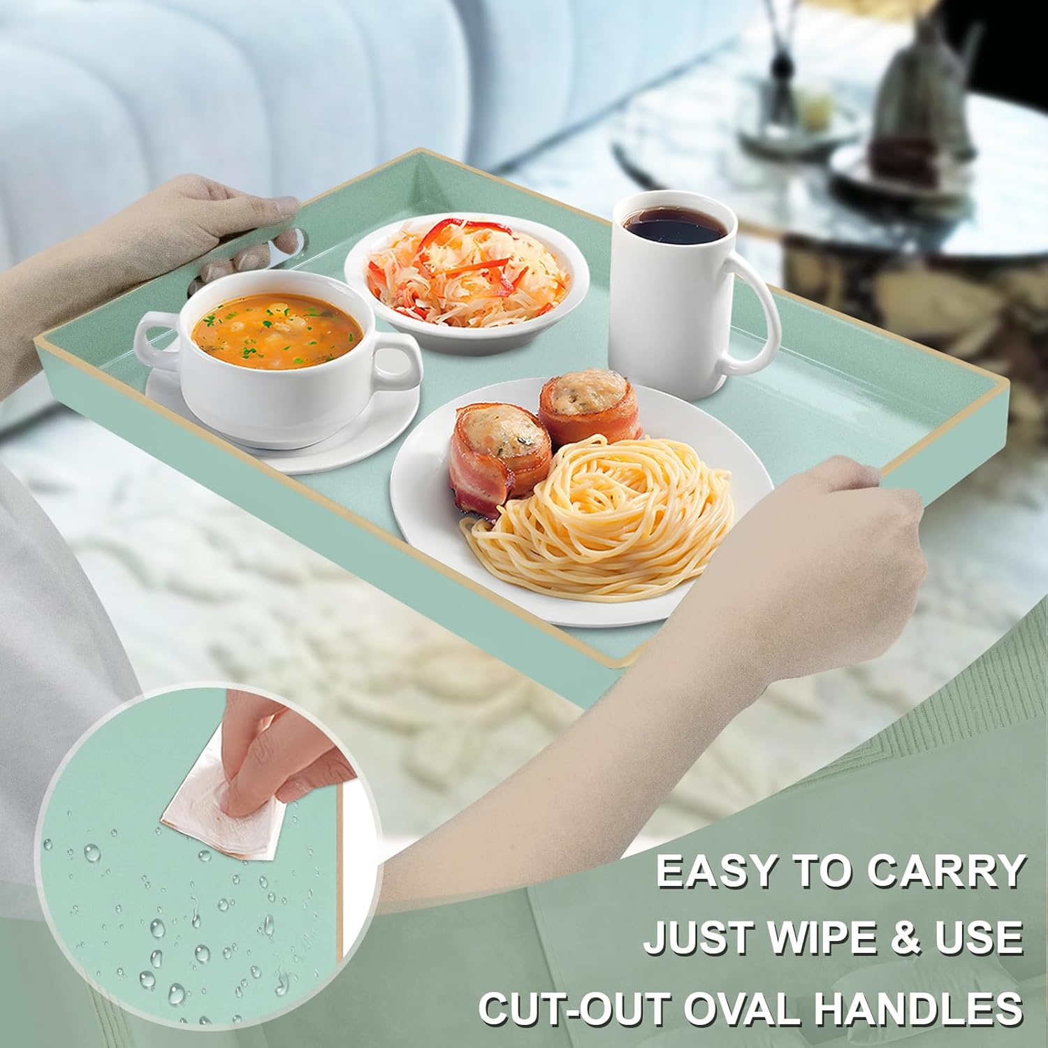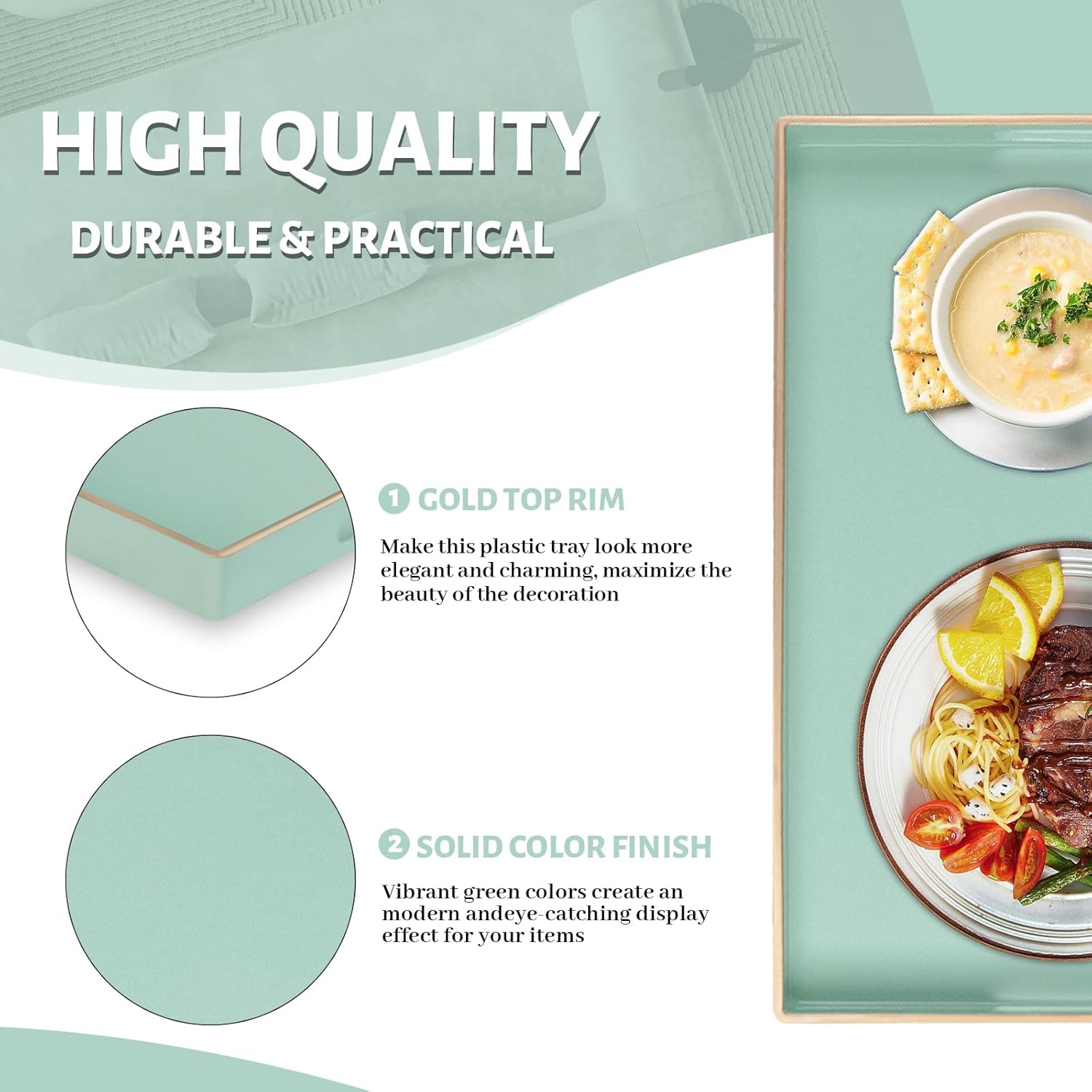 MAONAME Mint Green Serving Tray with Handles, Modern Decorative Trays for Coffee Table, Plastic Rectangular Trays for Ottoman, Bathroom, Decor, 15.8” x 10.2” x1.4