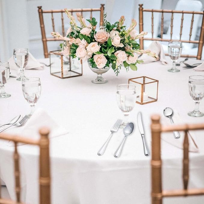 • CLASSICAL DESIGN: The products adopted mirror polishing technology which has no scratches and spots. The smooth edges of the knives and forks will not hurt your mouth. The light heavy knife can cut food more effectively. Appropriate thickness to hold it comfortably