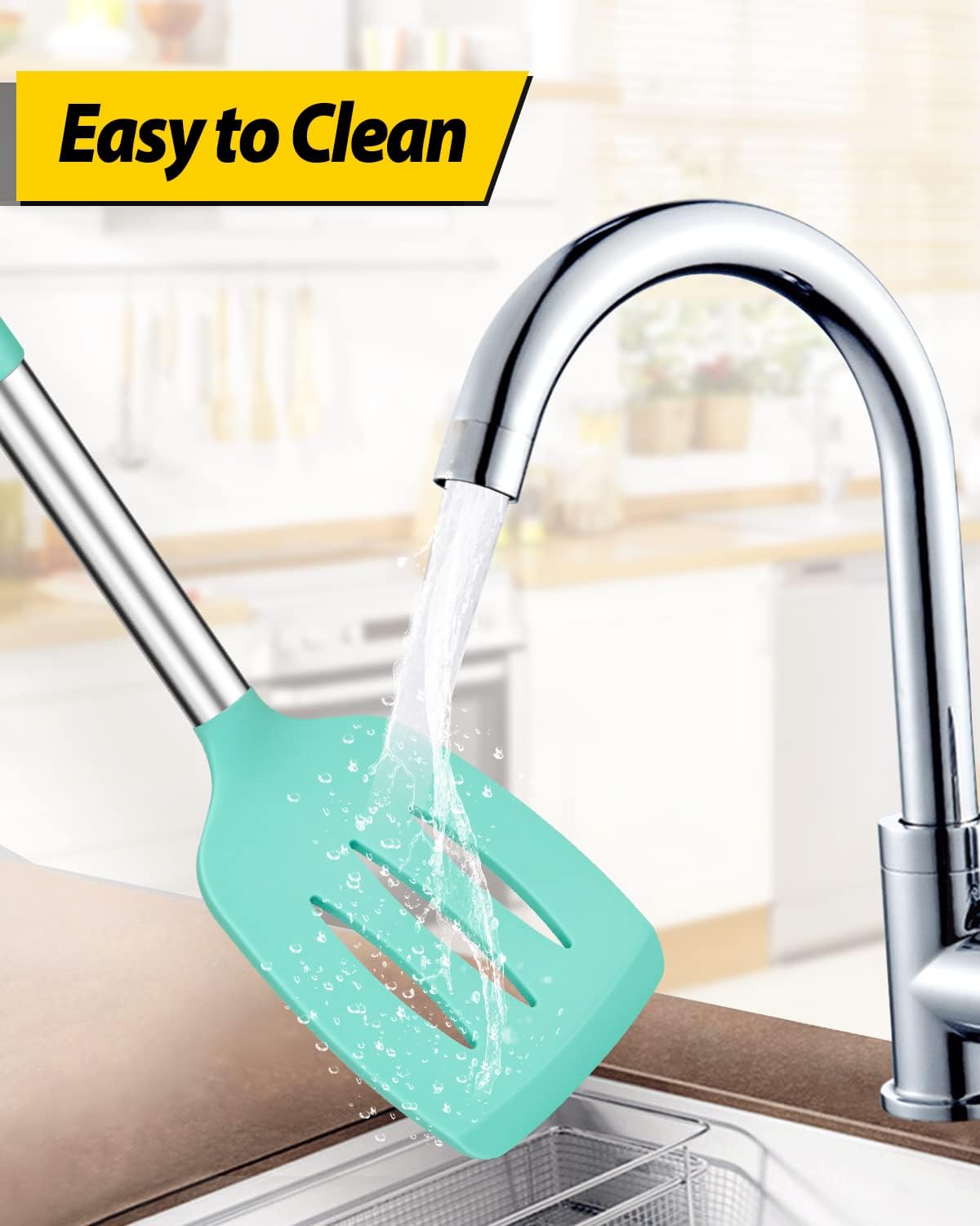 • More Safe and Healthy : Our silicone spatulas are made of food-grade silicone, free of BPA;Even at high temperatures, there is no need to worry about melting or deforming;And the soft silicone head won't scratch the coating, it can better protect your pot