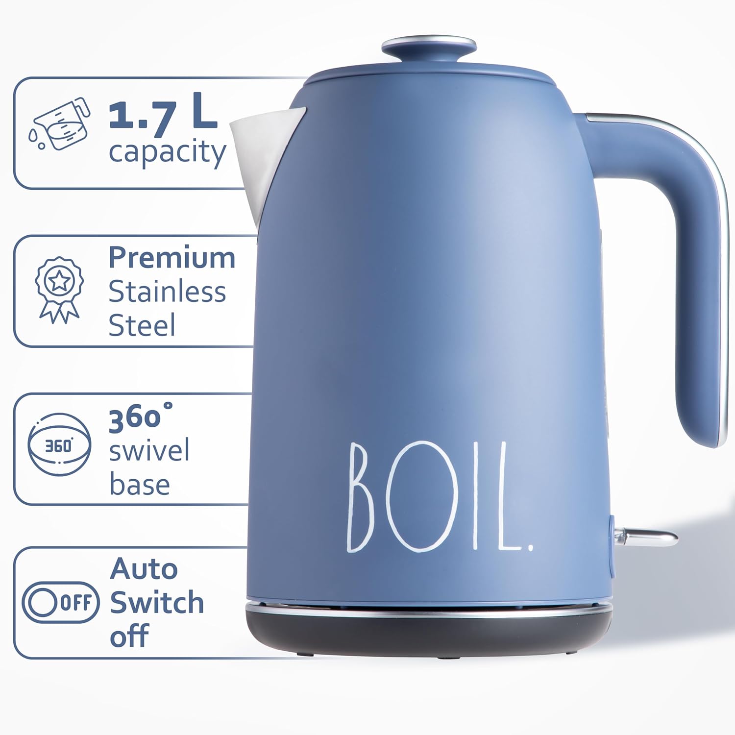 • Add Simple Style to Your Home and Countertop - Accessorize your kitchen with this electric kettle featuring labels in Rae Dunn’s signature font and sand matte finish. Add Rae Dunn style to your counter with an essential electric appliance that will add convenience and warmth to your morning.