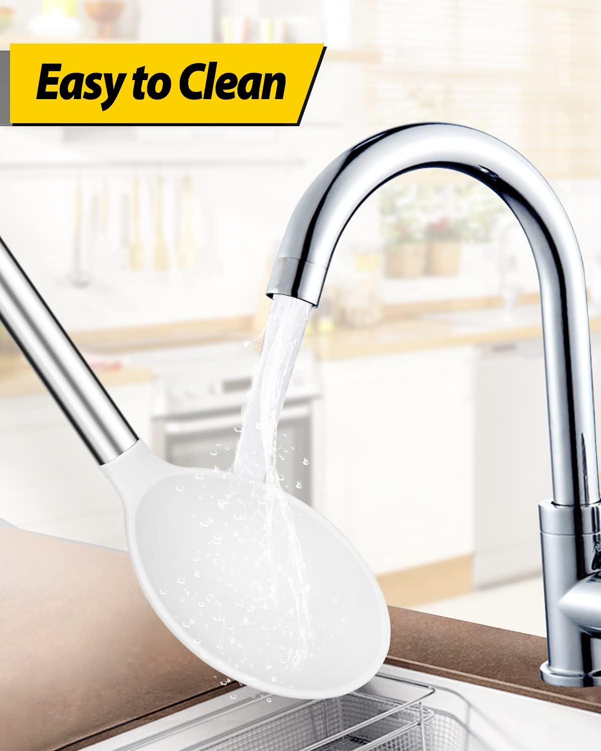 • More Safe and Healthy : Our silicone spoons are made of food-grade silicone, free of BPA;Even at high temperatures, there is no need to worry about melting or deforming;And the soft silicone head won't scratch the coating, it can better protect your pot