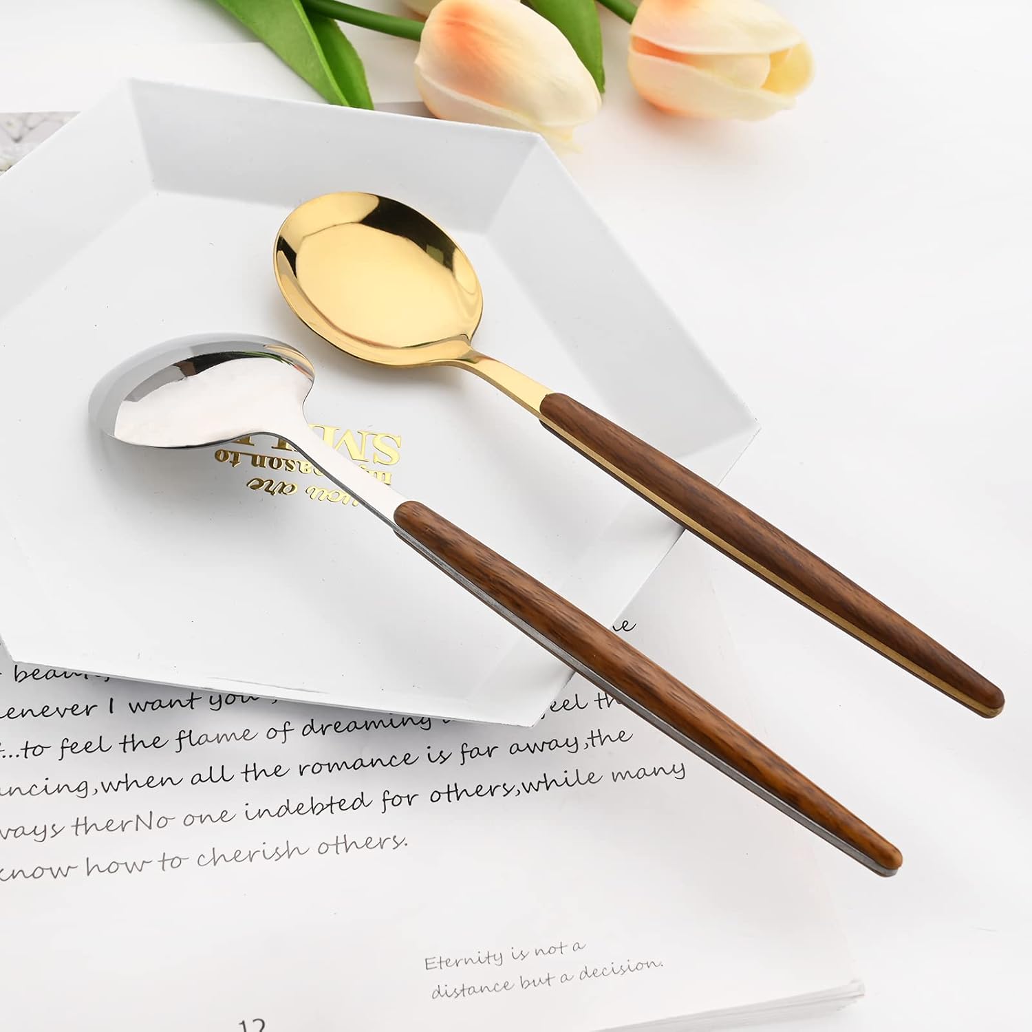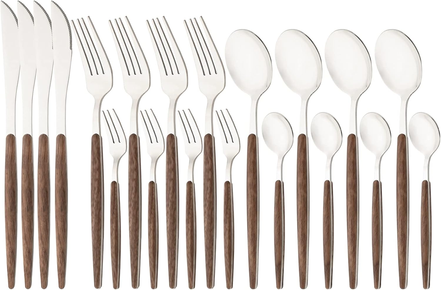 • [ Elegant appearance ] Stainless steel cutlery with vintage wood handles neutralizes the coldness of stainless steel and the heaviness of wood,Enhance the beauty of dining, suitable for various occasions.